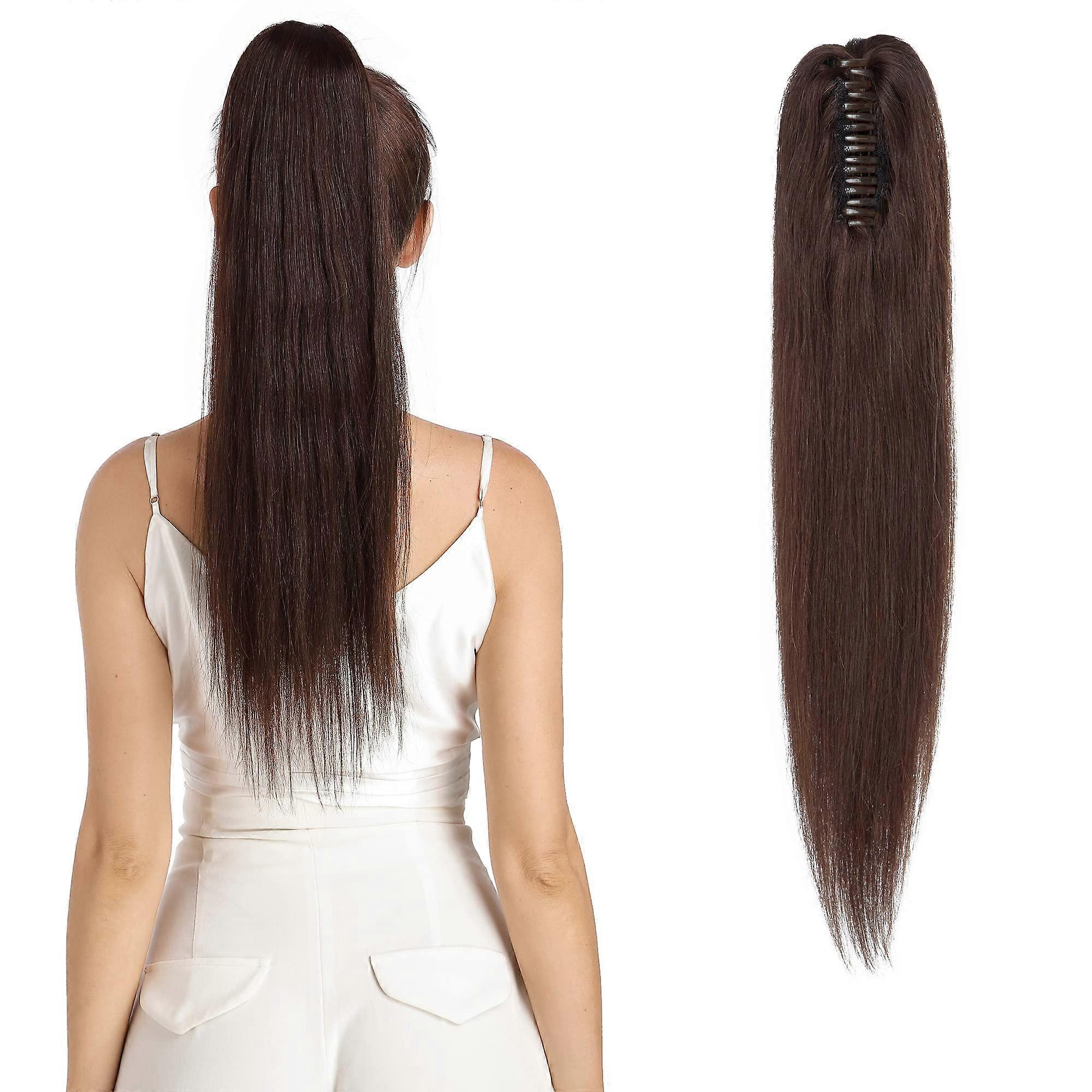 Dark Brown Human Hair Ponytail Extension 18 Inch Claw Clip Remy Hair for Women Instant Volume Boost