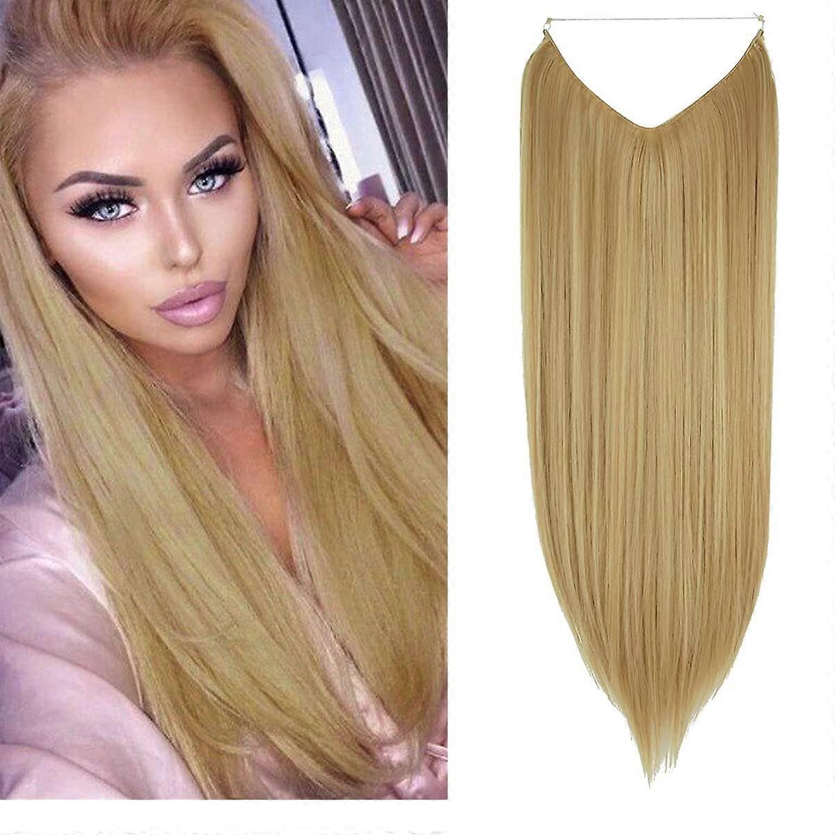 22 Inch Halo Hair Extensions Dirty Blonde Remy Human Hair Invisible Wire Instant Volume Boost