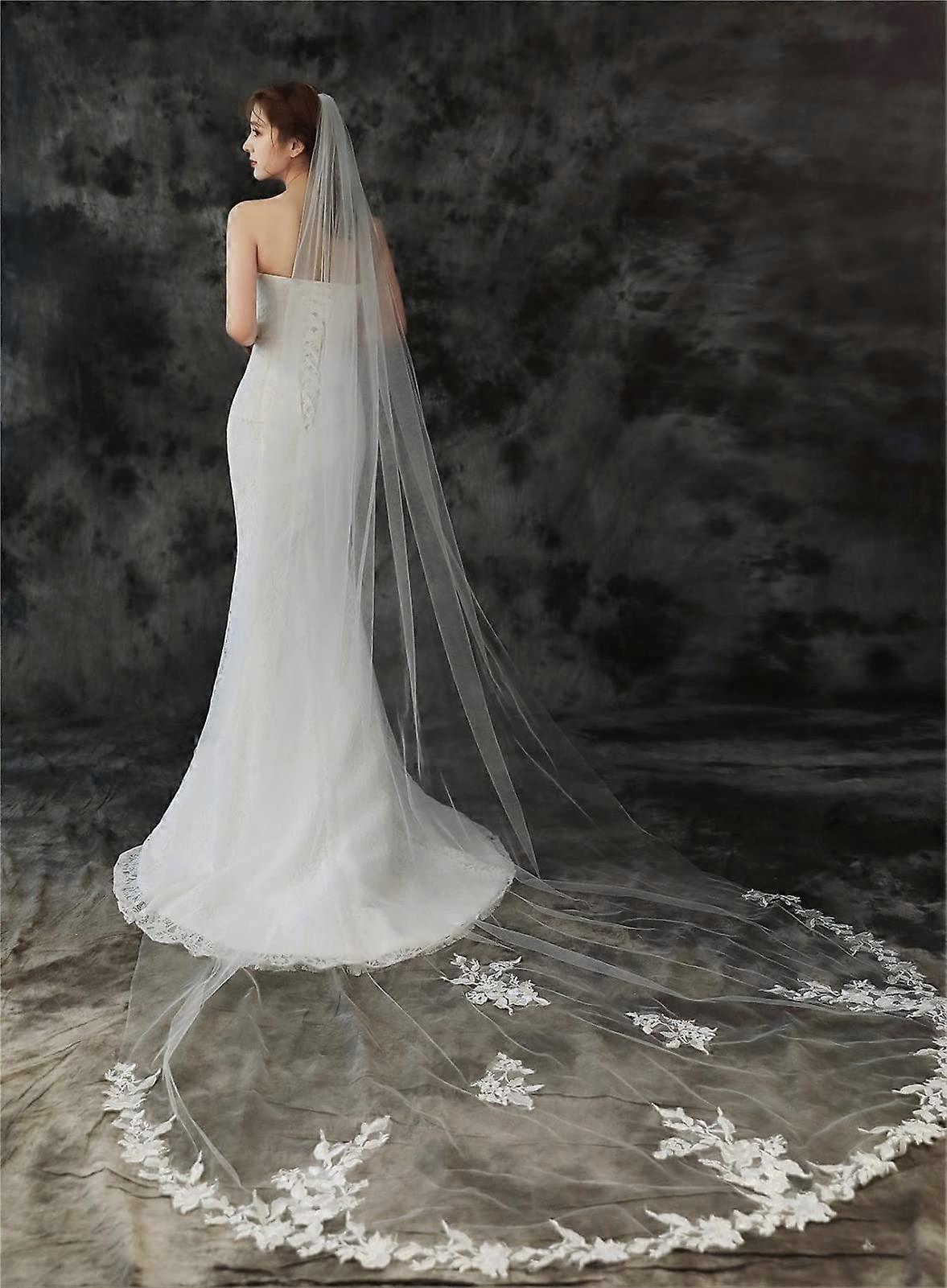 Cathedral Wedding Veil Ivory Lace Applique Long Bridal Veil with Comb for Elegant Ceremony