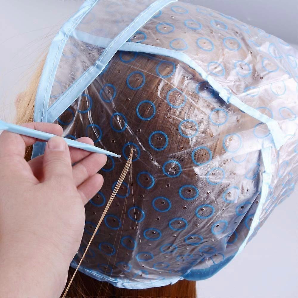 Hair Highlighting Cap with Hook Reusable Set for Salon and Home Hair Coloring Frosting Blue