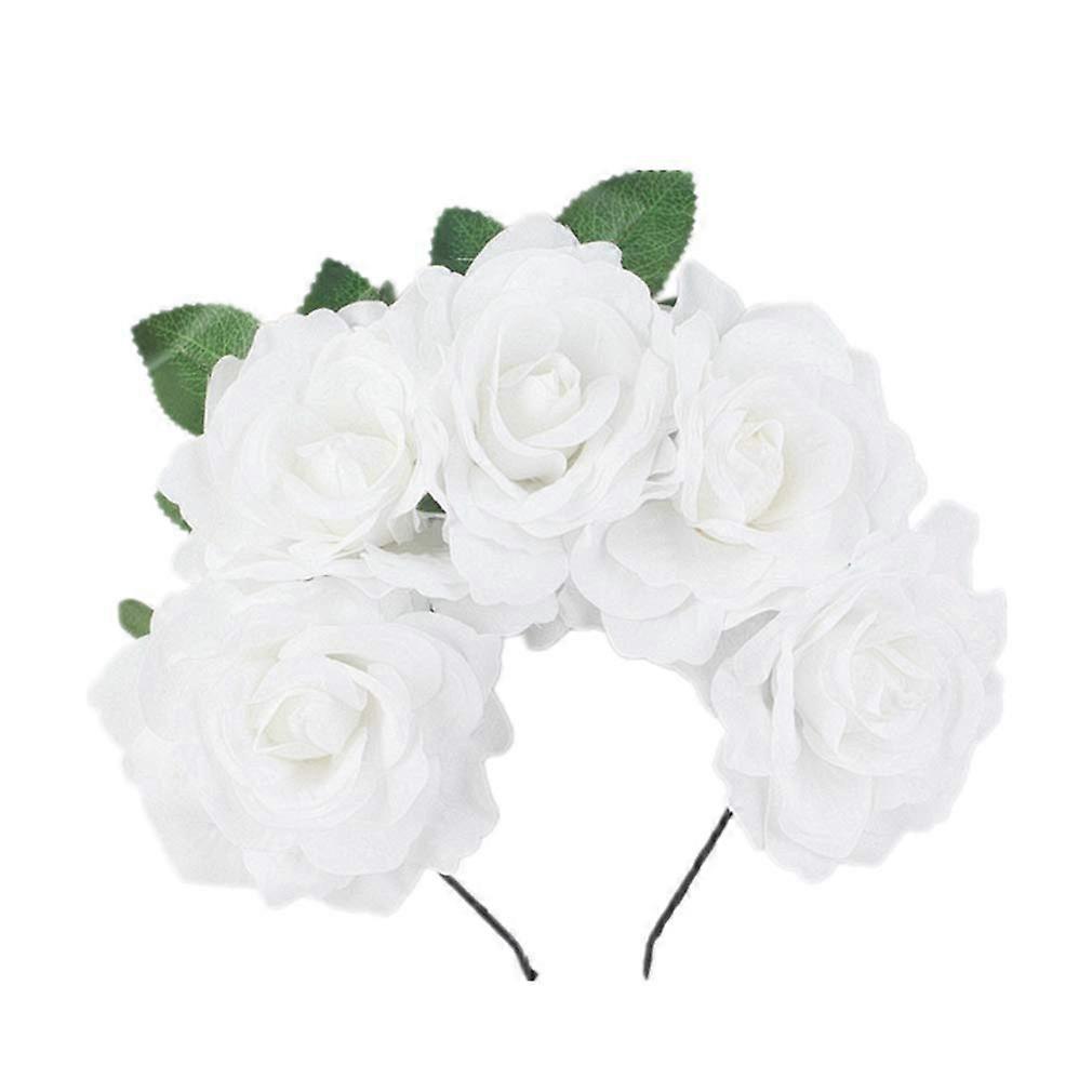 White Rose Flower Crown Bridal Headband with Realistic Design for Wedding and Flower Girl