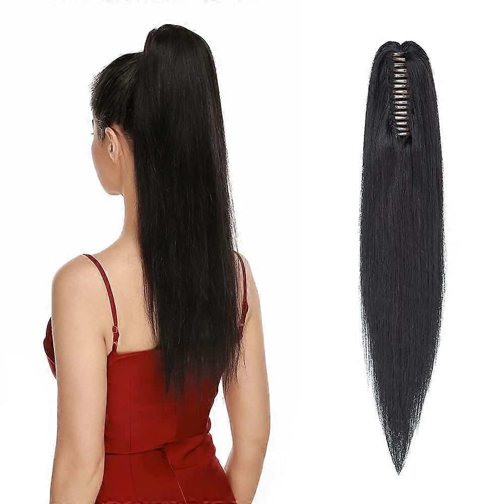 Remy Human Hair Ponytail Extension 22 Inch Long Straight Clip In Claw Clip Hairpiece for Women Jet Black 120g