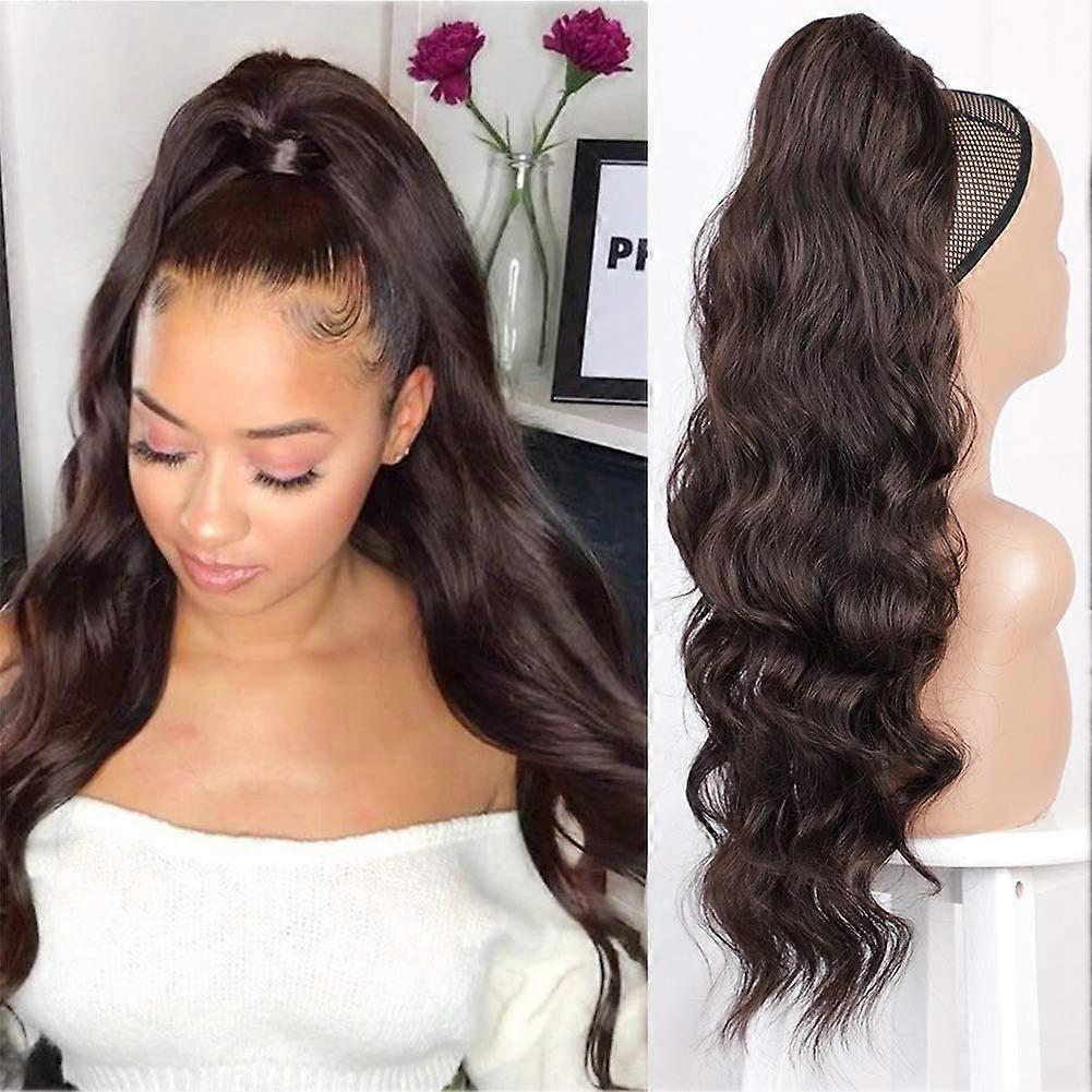 Black Synthetic Long Wavy Ponytail Hair Extension for Women, Natural Wavy Texture, Heat Resistant