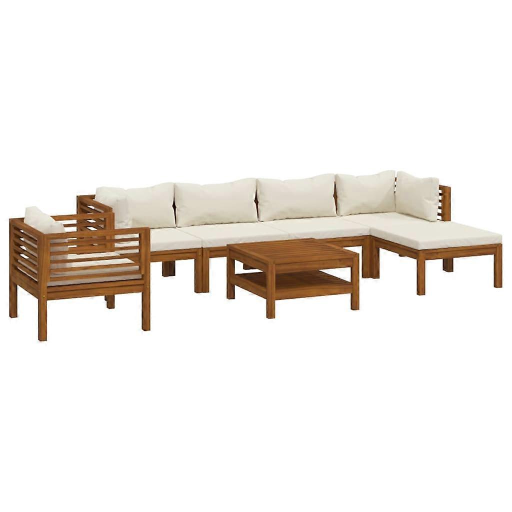 7 Piece Garden Lounge Set With Cream Cushion Solid Acacia Wood Patio Furniture Sets