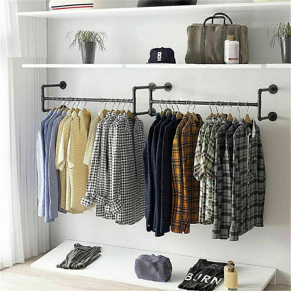 Maximize Space Efficiently: Utilize Vertical Space In Your Home With This Wall-Mounted Clothes Rail Shelf Perfect For Small Apartments Bedrooms Or Hallways. Its 4 Robust Durable Design: Crafted From High-Quality Black Pipe Iron This Garment Rack Is Designed To Support Up To 110 Lbs Ensuring Stability And Durability For Heavy-Duty Use. The Integrated Side Frame Enhances Its Strength Making It Ideal For Bulky Coats Suits And More. Stylish Industrial Aesthetic: Add A Touch Of Industrial Chic To Your Interior With This Sleek Garment Hanging Rack. Its Minimalist Pipe Design Not Only Serves A Practical Purpose But Also Acts As A Stylish Display Piece Enhancing The Decor Of Any Room. Versatile Practical: This Clothes Rail Is Not Just For Bedrooms; Use It In Your Laundry Room Guest Room Key Features: