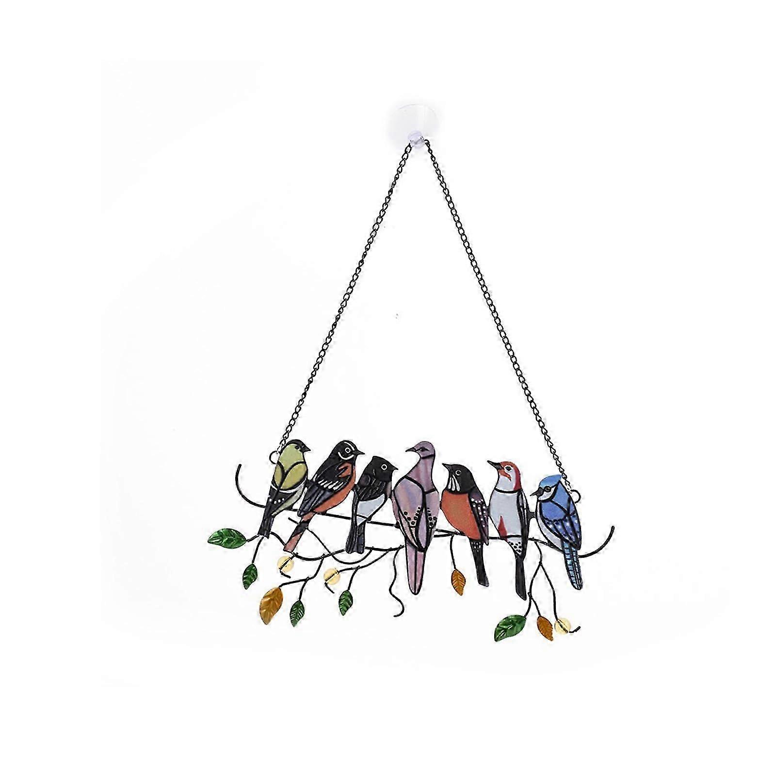 Fensteranhnger mit sieben Vgeln One-Sided Multicolor Stained Metal Sun Catcher Window Decor Bird Lover Gift