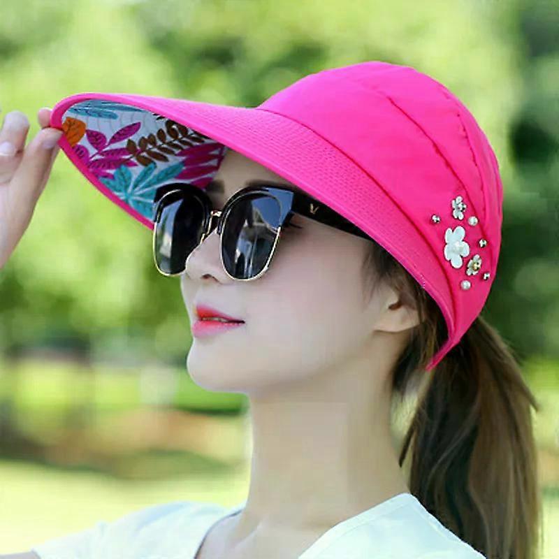 Casual Women Summer Wide Brim Sun Visor Hat Adjustable UV Protection Foldable Sport Empty Top Cap Beach Cap Fast Dry Cap