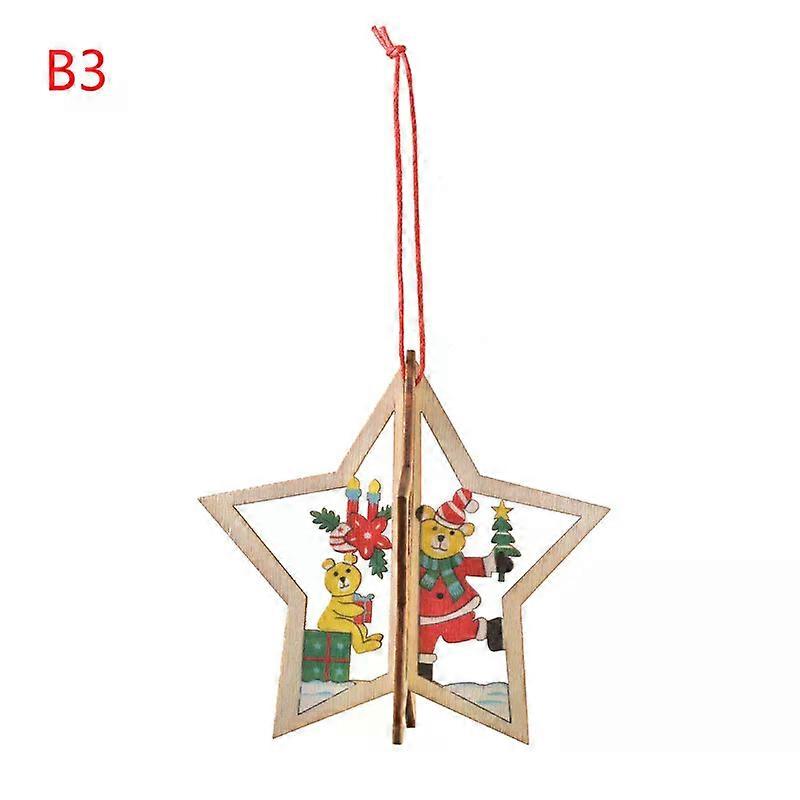 Christmas Wooden Hollow Christmas Tree Snowflake Ornament 3D Christmas Bell Pentagram Ornament Home Holiday Party Decoration