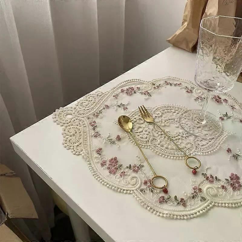 European Style Rose Embroidered Placemat Tablecloth Lace Round Wedding Party Vintage French Desktop Pastoral Decoration Supplies