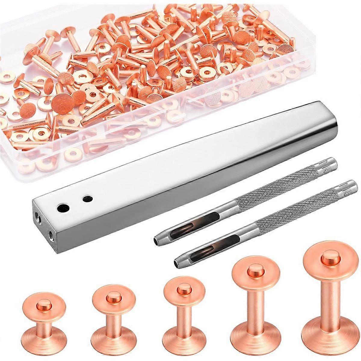 100 Sets Copper Rivets and Burrs 9 and 12 Burrs Setter Assorted Leather Rivet Kit with Hole Punch Cu