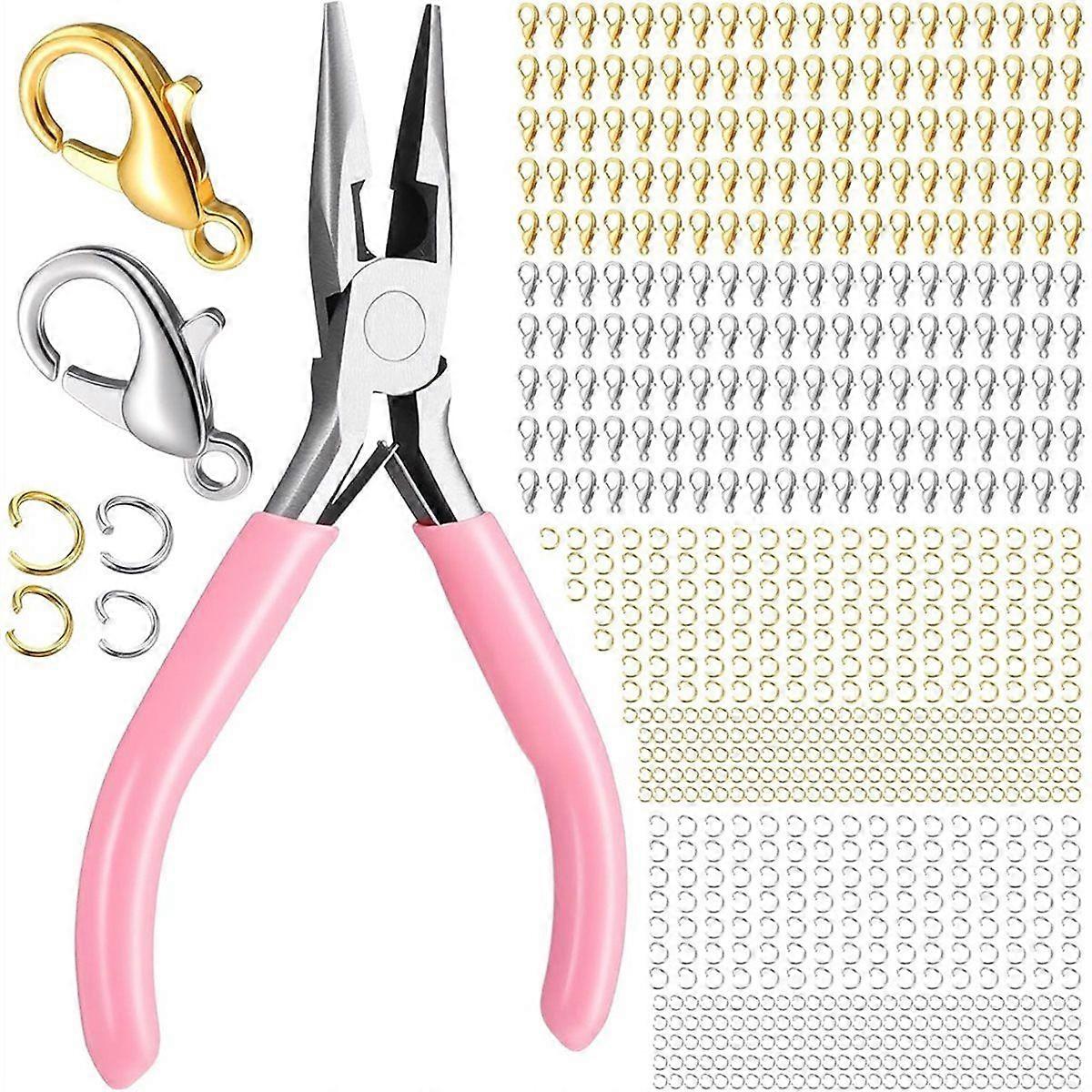 1000Pcs Lobster Claw Clasps and Open Jump Rings Set,with Nose Pliers,Necklace Clasps and Closures fo
