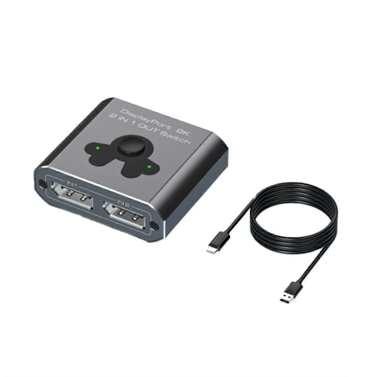 Quickly switch between two computers to share a single display device. Ultra-HD Resolution: Supports 8K@60Hz and is compatible with 4K@144Hz for crisp, smooth visuals. Plug-and-Play: for /Vista/XP, macOS, Linux, and Unix without additional drivers. Convenient Switching: One-touch panel buttons to switch between DP 1 and DP 2 input sources. Description Report Item If you encounter any issues during use, please contact us first. We provide professional assistance! Product Features • 2-in-1-out Switching: Quickly switch between two computers to share a single display device. • Ultra-HD Resolution: Supports 8K@60Hz and is compatible with 4K@144Hz for crisp, smooth visuals. • Plug-and-Play: for /Vista/XP, macOS, Linux, and Unix without additional drivers. • Convenient Switching: One-touch panel buttons to switch between DP 1 and DP 2 input sources. • Stable Transmission: Recommended ≤ DP cable maintains high-quality signal even at 8K60Hz. Application Scenarios • Office: Switch between two computers on a single monitor. • Gaming/Entertainment: Enjoy immersive experiences with high resolution and refresh rates. • Home/Studio: Boost productivity while saving space and costs. Important Notes • Use high-quality DP 1.4 cables to stable signal transmission. • Input/output cable length should be ≤3 meters, especially in 8K60Hz mode. Color: As Shown Material: Aluminium Package Contents: 1 x DP1.4 Switcher 1 x USB to Type-C Power Cable Only the above package content, other products are not included. Note: Light reflection and different displays may cause the color of the item in the picture a little different from the real thing. The measurement allowed error is +/- 1-3cm.