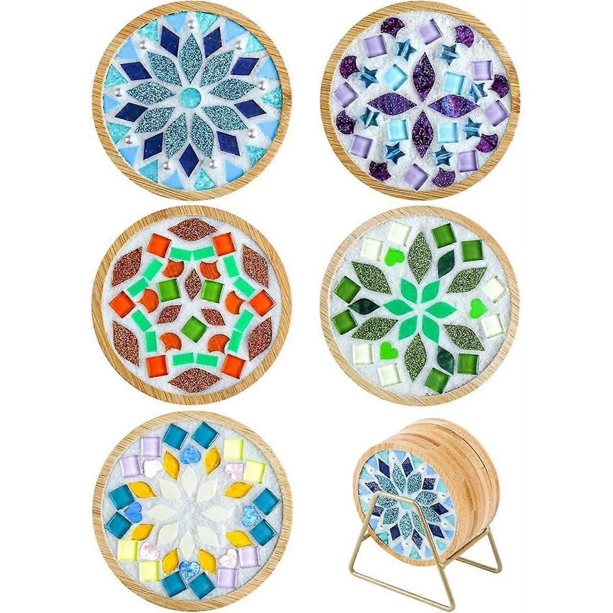 1 pcs Christmas DIY Mosaic Tile Kits for Crafts, Mixed Color Mosaic Craft Kits with Bamboo Coaster f