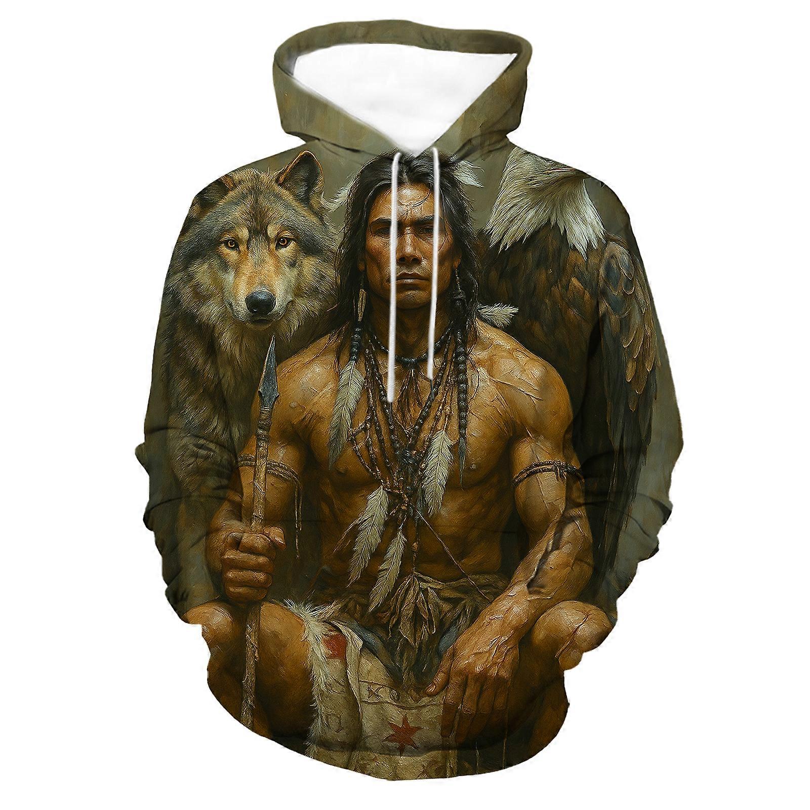 Men's Rustic Wildlife & Figure Graphic Hoodie Earth Tone Art Print Pullover Bold Casual Sweatshirt