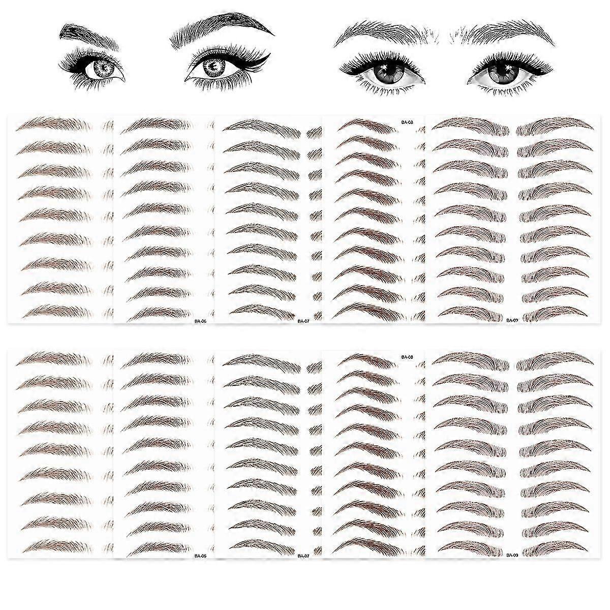10PCS Brow Tattoo Eyebrow Peel Off Temporary Tint Waterproof 4d Realistic Sticker Angled Stencil Removal Practice Drawing Color Sheets Patches Women