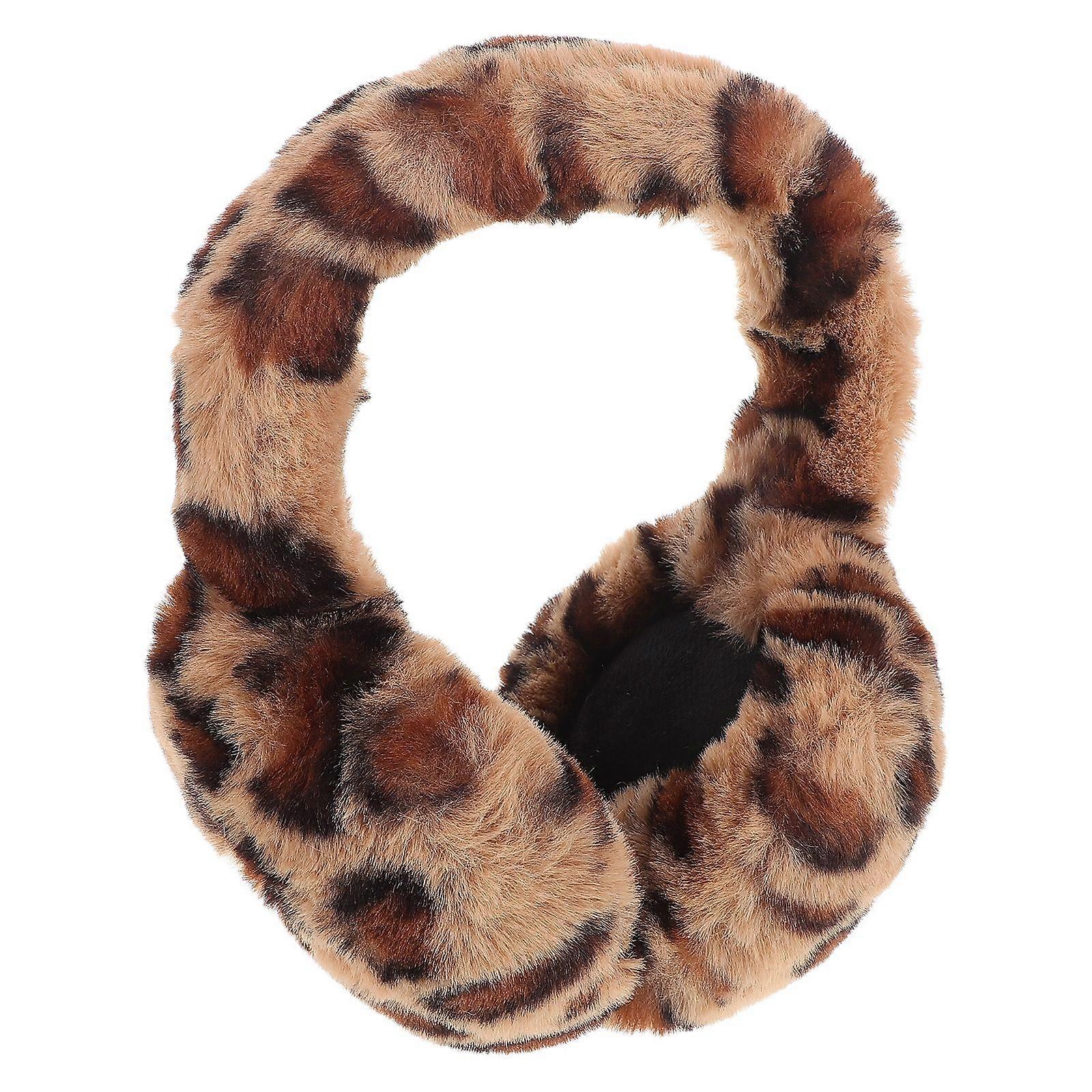 Women Leopard Winter EarMuffs Leopard Print Fluffy Foldable Earmuffs Warm Ear Covers For Outdoor Cold Weather Ear Protection For Skiing Snowboarding A