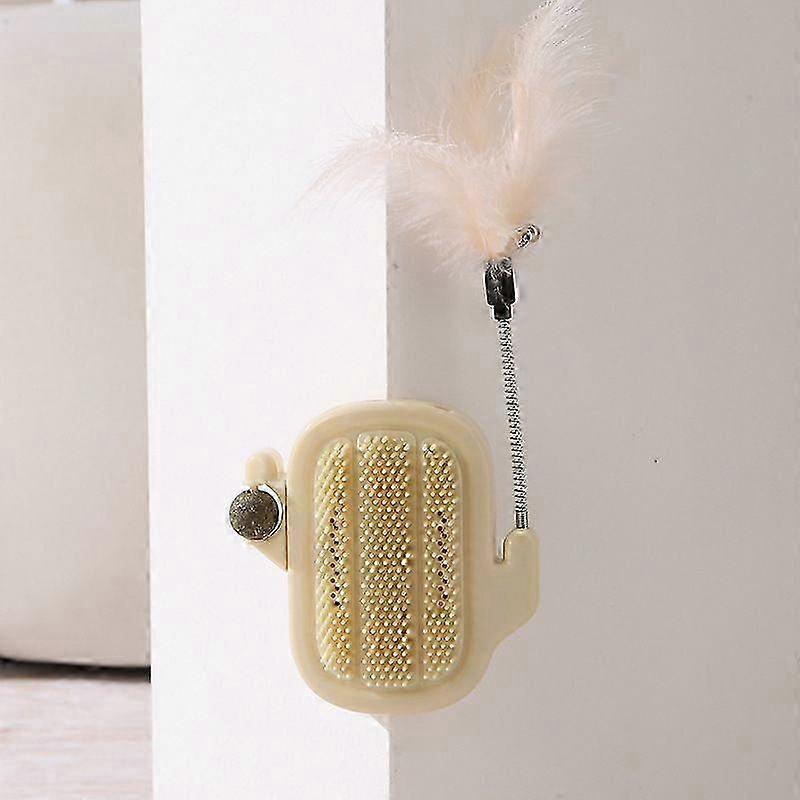 3-in-1 Cat Groomer & Scratch Pad with Catnip Ball & Feather Toy, Cactus Wall Brush for Indoor Cats Massage