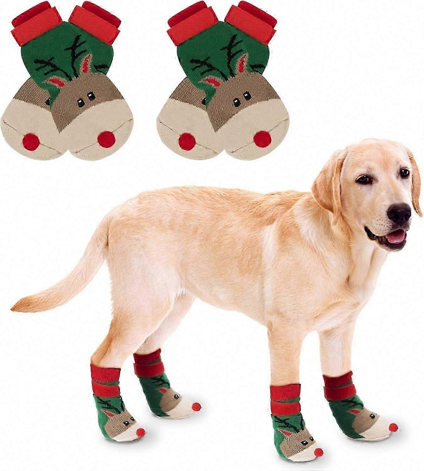 Christmas Dog Socks 2 Pairs - Non-Slip Grip Socks with Adjustable Straps for Hardwood Floors, Paw Protectors for Small & Medium Pets