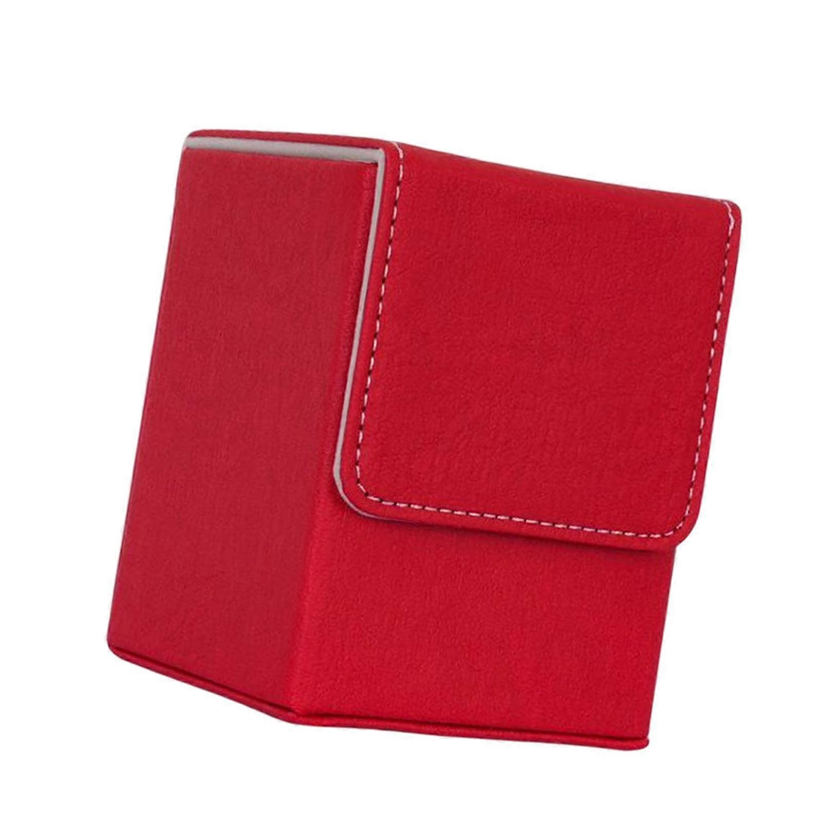 Description: [Perfect Card Storage] The premium quality pu leather deck locker.Comes with a hard cover back and front and anti scratch and anti stain material. [Refined Design] Card deck box holds up to 100 side loaded sleeved cards.The soft interior and tough outer material make the deck box feel great and look very impressive. [Easy Access] The innovative deck box provides an easy access from both sides to your card deck when the deck box is open [Size] The deck box measures 3.07inch x 2.95inch x 4.09inch.The Card deck box is fully compatible for storing the majority of Collectible Cards. [Compatibility] Deck Box is fit all Standard Playing Card games,such as Football,and Baseball Cards along with many more. Specifications: Material:PU Leather Size: 7.8cmx7.5cmx10.4cm/3.07inch x 2.95inch x 4.09inch Note: Please allow slightly errors due to manual measurement and different monitors. Package included: 1 Card Deck Box
