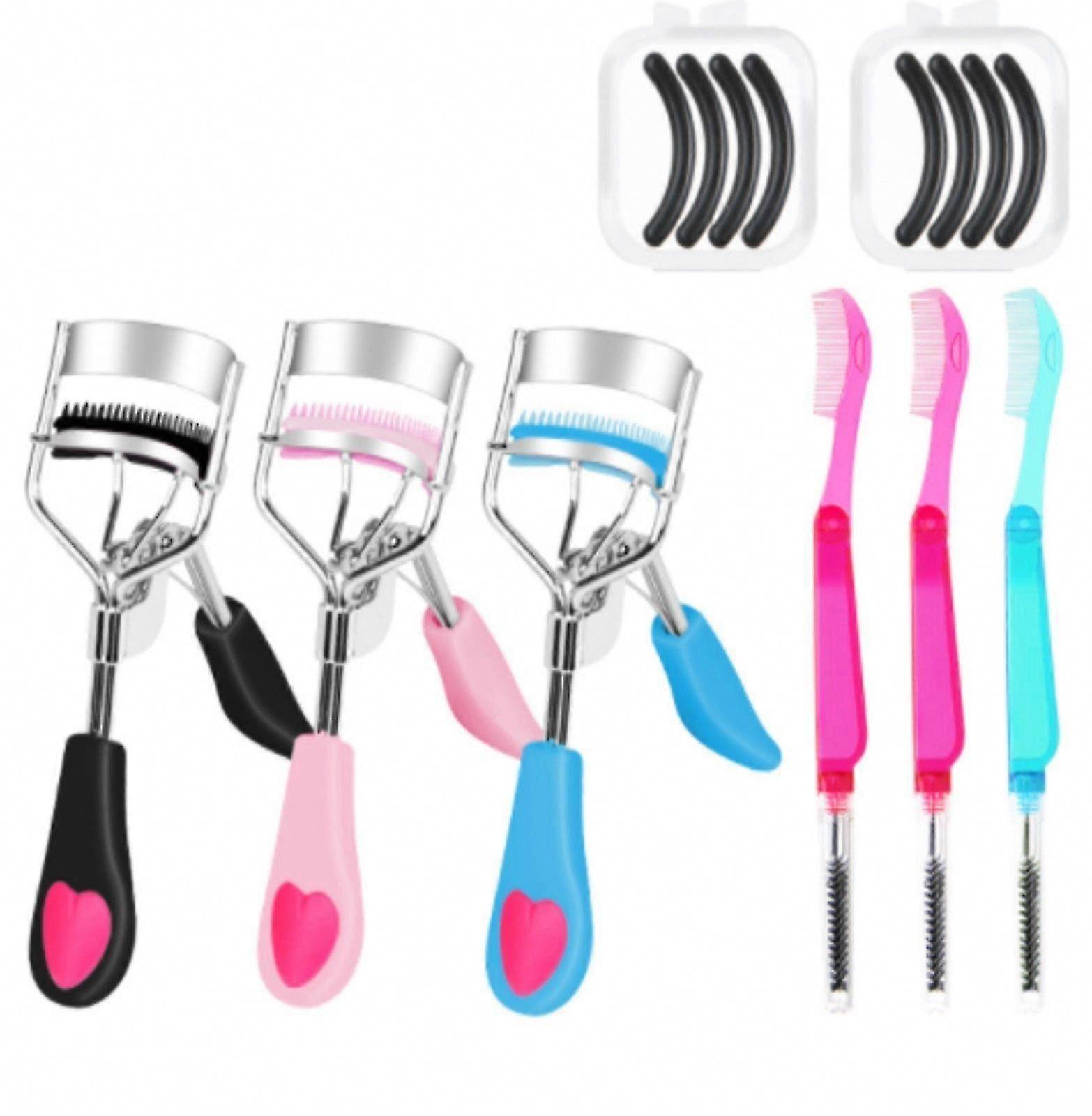Eyelash Curler Set with Eyebrow Brush & 4 Silicone Refill Pads for Women