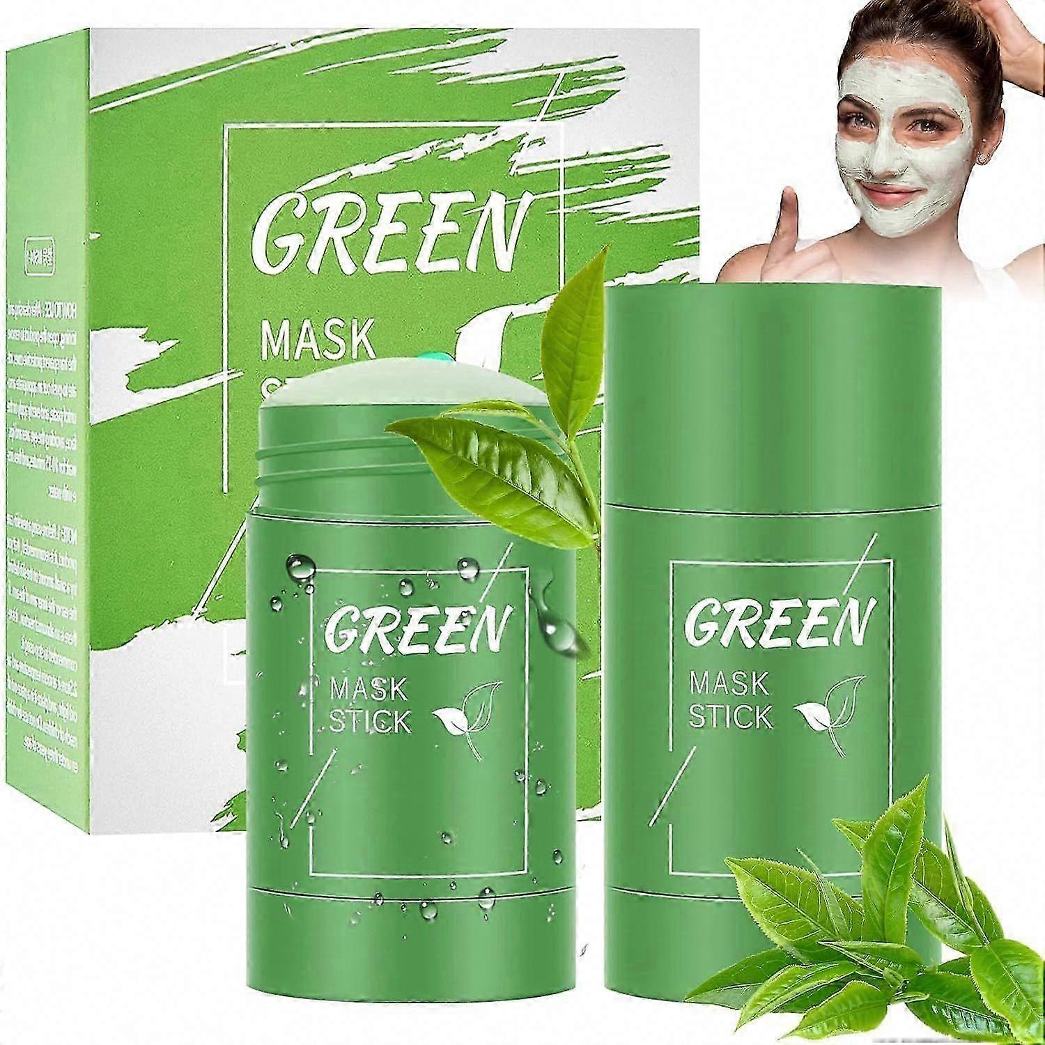 2 Pcs Green Tea Clay Mask Stick, Purifying & Moisturising for Oil Control, Cleansing & Nourishing