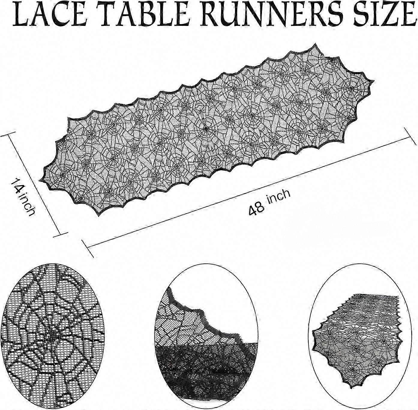 PERFECT DECORATION - If you are looking for some Scary halloween indoor decorations, our black lace table runner is perfect for you! The table runner with spider web lace decoration, catering to Halloween Day theme, full of creepy and spooky flavor. Halloween only comes once a year so have fun with it!HIGH QUALITY & DURABLE - The high quality lace fabric adds an elegant look to your table setting, soft touch. Table runners with various spider web patterns exquisite sewing durable, Hollow double-sided design is not easily to loose thread! It can enhance the atmosphere of your home decoration.BEAUTIFUL DESIGN - Lace table runner perfect for dining table, coffee table, TV console, dresser, Halloween decorations Indoor. Extend from holiday to daily life. You can also hang the table runner on the wall, sofa and bed, unusual ideas to impress your guests on your helloween Day. Give you a delightful dining experience!EASY CARE - This holiday table runner is 100% polyester, not fade after repeated cleaning. Hand wash gently or machine wash in cold water, can be ironed at low temperature. Do not bleach, preferably hang for drying away from direct sunlight.EXCELLENT CUSTOMER SERVICE - Your satisfaction is our motivation. Please If there is a problem with the product received, We will definitely give you a perfect solution.