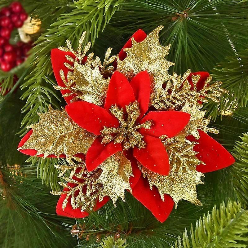 14cm Glitter Artificial Christmas Flowers Festival Decorations Or Party Wedding Decoration Celebrating Wealth Home New Year Gift