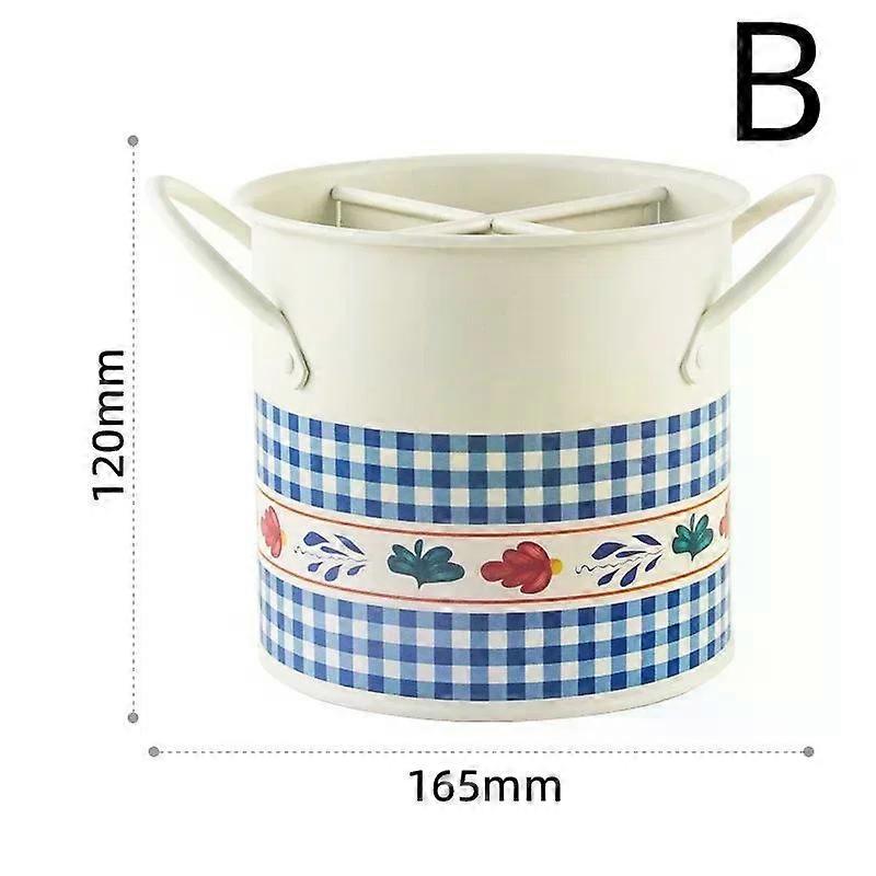 Retro Tableware Storage Bucket Draining Rack with Divider Kitchen Knife and Fork Storage Box Home Decoration for Kitchen Tools