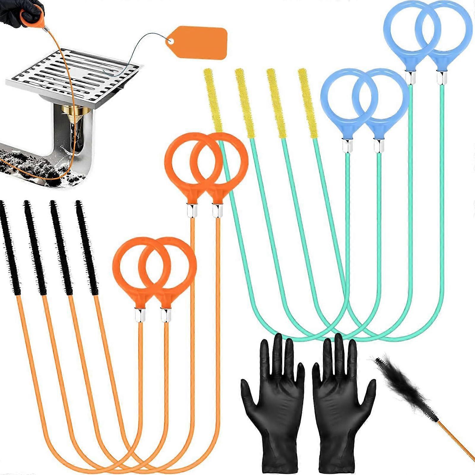 Pack of 8 Professional Drain Cleaning Brush With Handle Effective Clog Removal Solution Multicolor