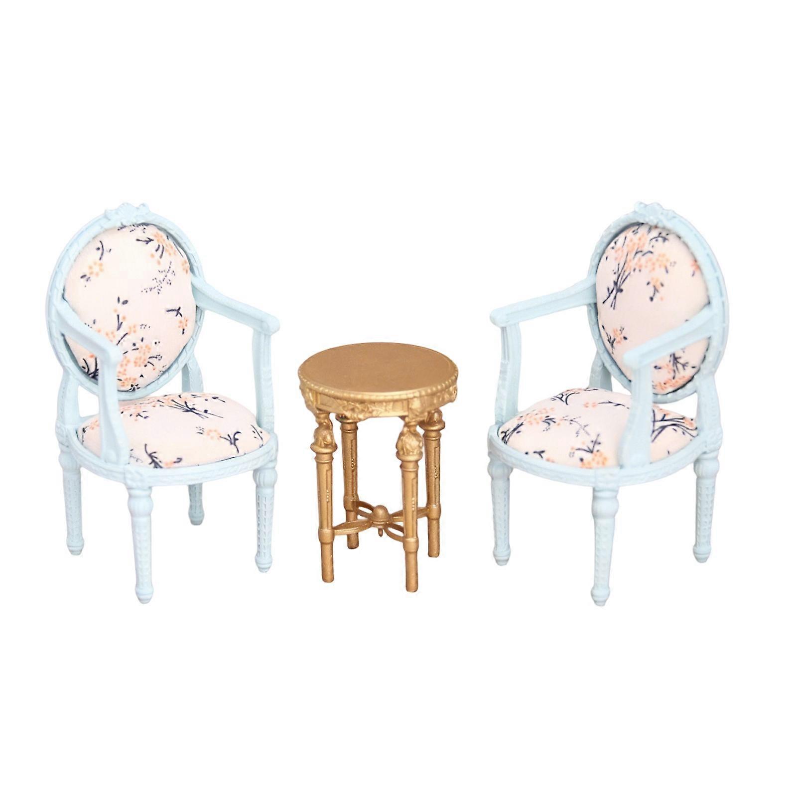 1/12 Scale Wooden Dollhouses Furniture Set Mini Wooden Table And Chair For Kids Floral Pattern Blue Set