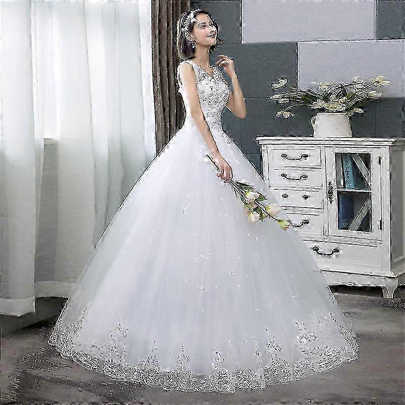 V-neck Off-White Sequined Wedding Dress 2026 - Simple Design Gown for Weddings