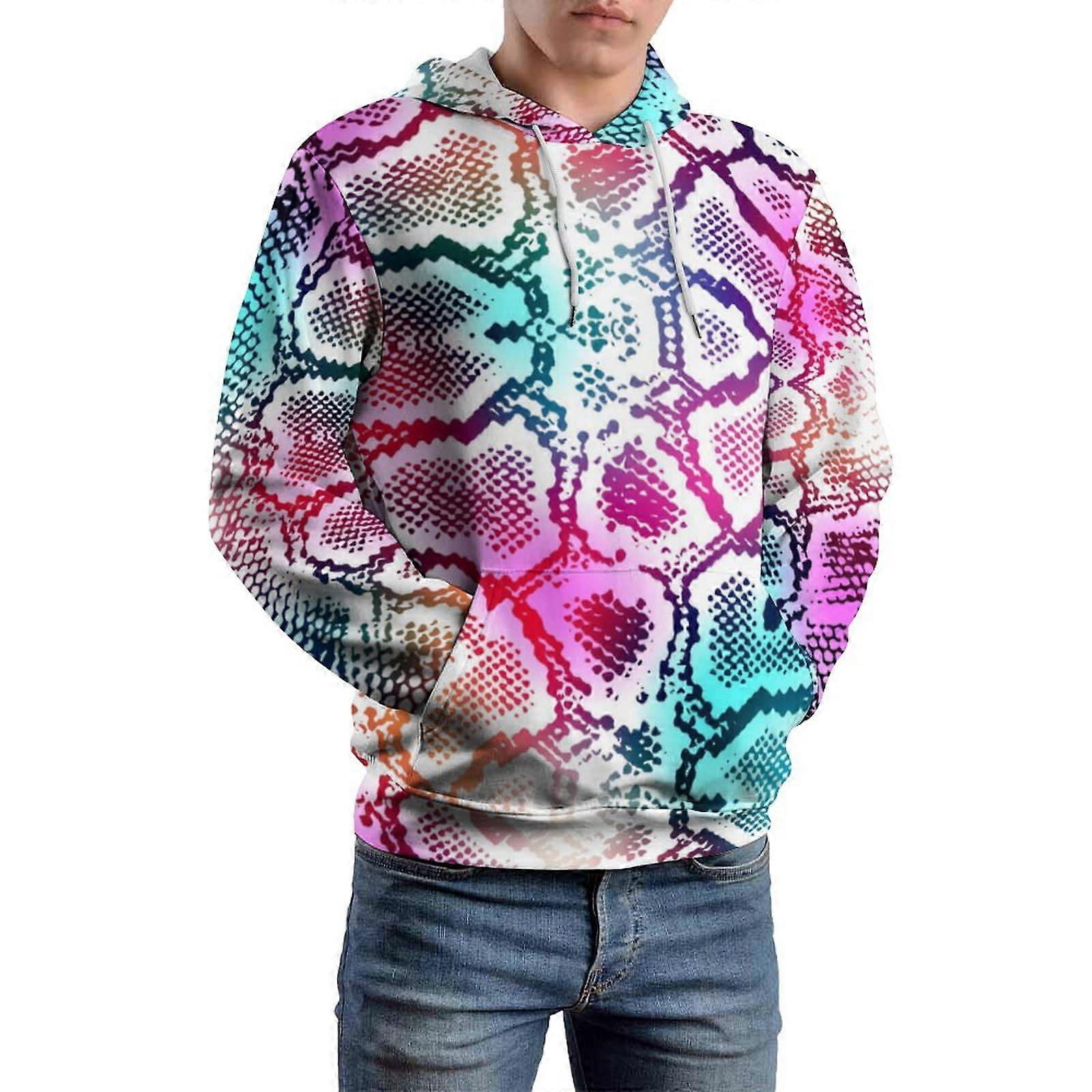 Men's Colorful Snake Skin Graphic Hoodie Vibrant Animal Print Pullover Bold Casual Sweatshirt
