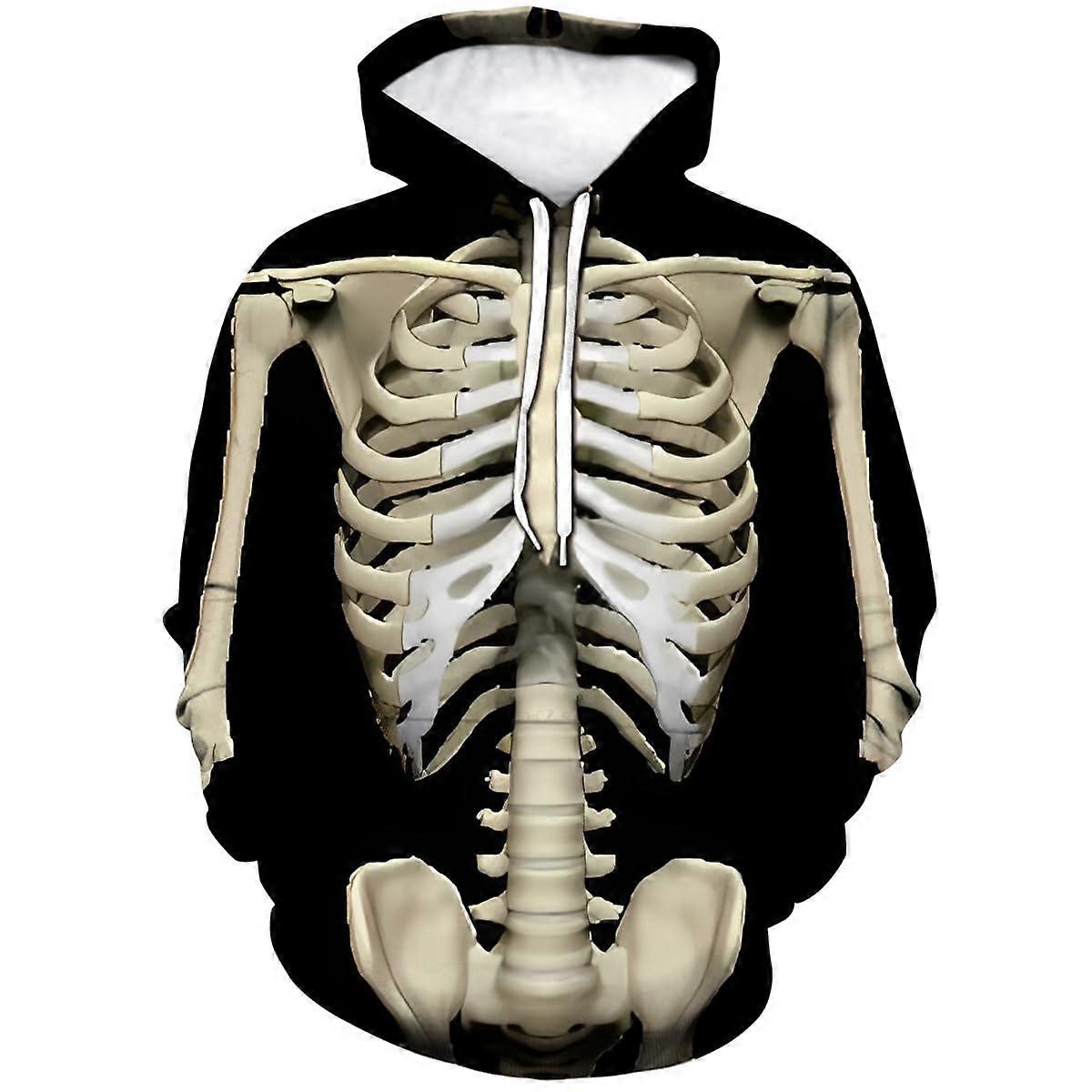 Men's Realistic Skeleton Graphic Hoodie Detailed Anatomy Art Print Pullover Edgy Streetwear Sweatshirt
