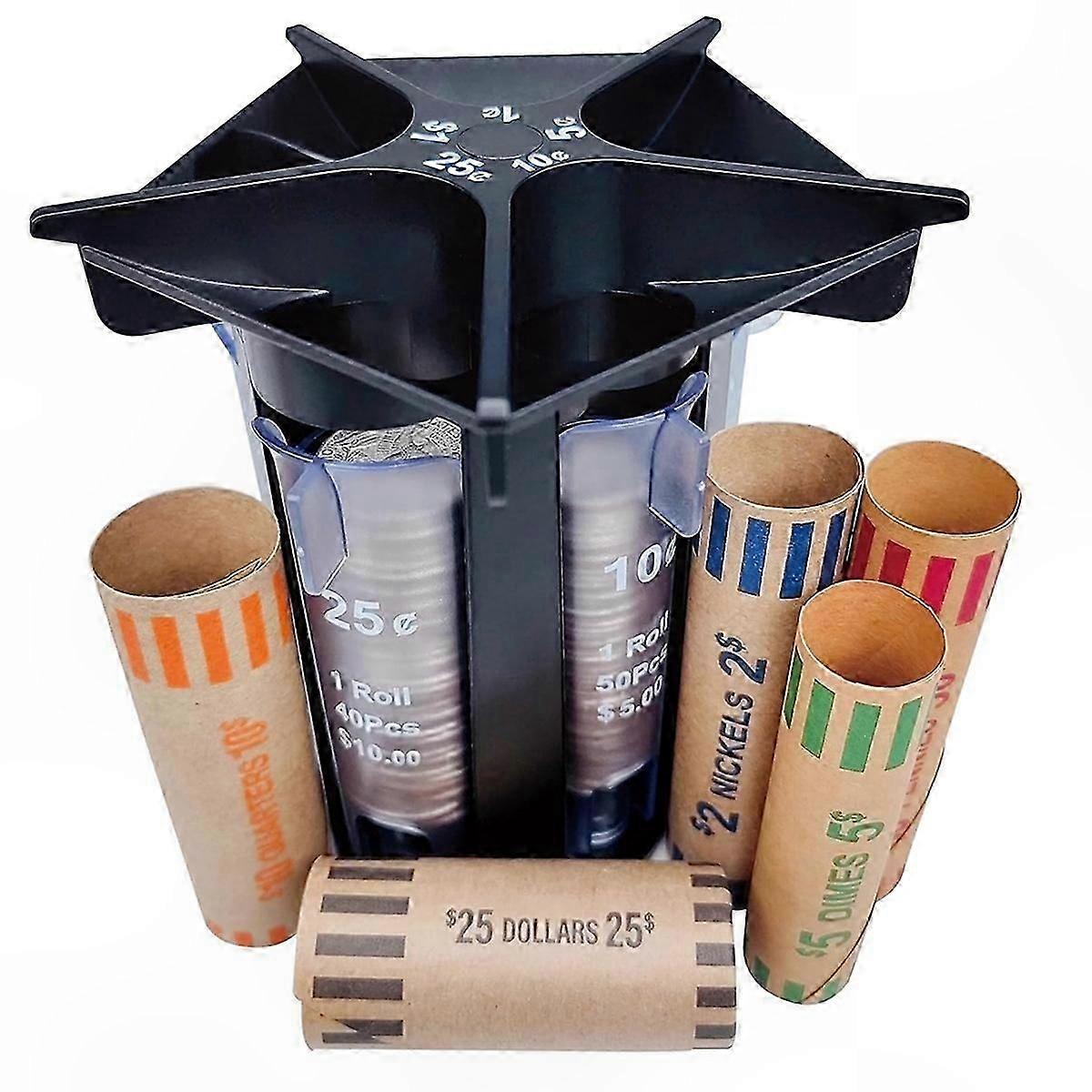 5-in-1 Coin Sorting and Counting Machine with Tubes and Wrappers for Easy Change Management