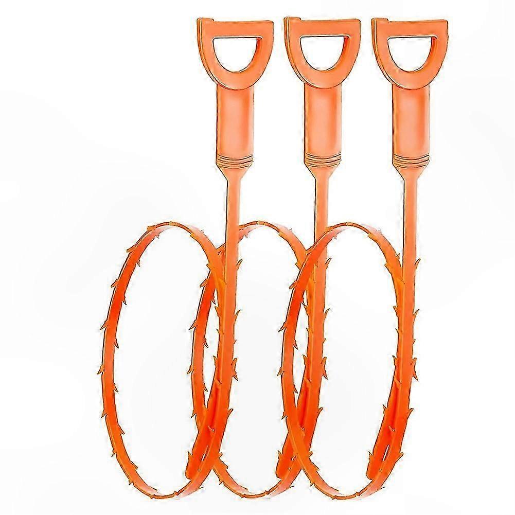 Package Included: 3 pcs Sink Snake Drain Clog Removal Tool Hair Cleaner Flexible and Bendable: The drainage dredger is made of environmentally friendly materials and has a soft texture that can be bent through a variety of filters and pipes. A uniquely designed barbed strip can easily capture hair and debris in the pipes. Easy to Operate: Simply hold the handle, insert, rotate it a few times, and pull it out. Repeat until the drain pipe is cleared. Wide Application Range: The drain pipe dredger can be easily bent into the P-trap, where most blockages occur. Therefore, it is suitable for bathrooms, kitchen sinks, washbasins, bathtubs, and sewers. Economical and Environmentally Friendly: Sewer hair dredging and cleaning tools are easy to use, easy to rinse, and can be reused. It is safer than chemical drain cleaners. Flexible Enough for a Variety of Pipes: A useful sewer cleaning tool. Strong and Durable: Made of flexible yet strong material to reach deep into pipes and pull out clogs without breaking. Reusable: Rinse and reuse the tool for repeated unclogging. Easy to Use: No tools or plumbing skills required. Simply insert, hook the debris, and pull — your drain will flow freely again. Versatile: Works on sink, shower, tub, and washing machine drains. How It Works: Insert the drain snake into the drain (ensure your sink opening is larger than 0.45 inches). Gently twist to capture hair and dirt. Pull out the clog — no more standing water. Rinse and repeat as needed. Will This Scratch My Pipes? No!