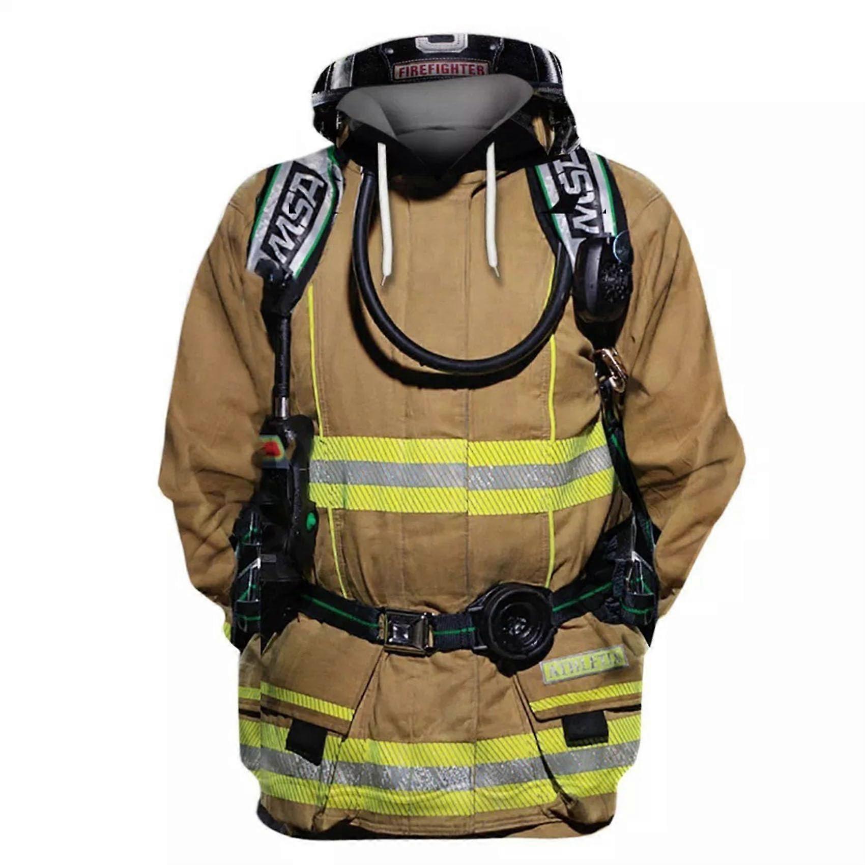 Men's Tactical Firefighter Gear Graphic Hoodie Realistic Uniform Print Pullover Unique Casual Sweatshirt