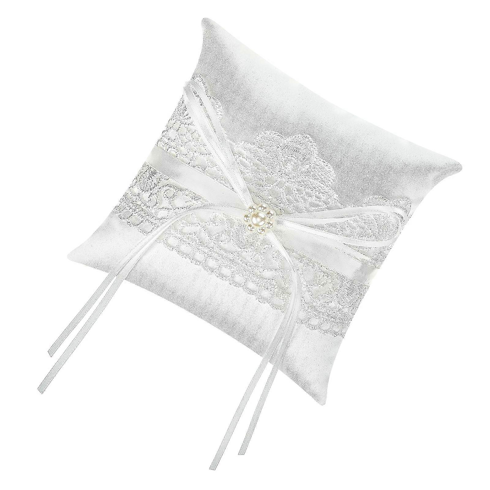 Wedding Rings Pillow with Lace Bowknot Pearls Rings Bearer Satined Bride Rings Cushion For Anniversaries And Special Event Multicolor