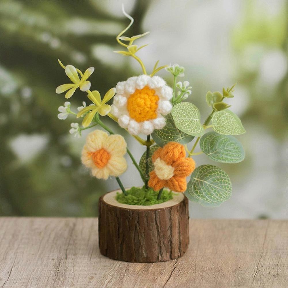Handmade Crochet Flower Pot Artificial Plant Desktop Decoration Ornament for Home Office