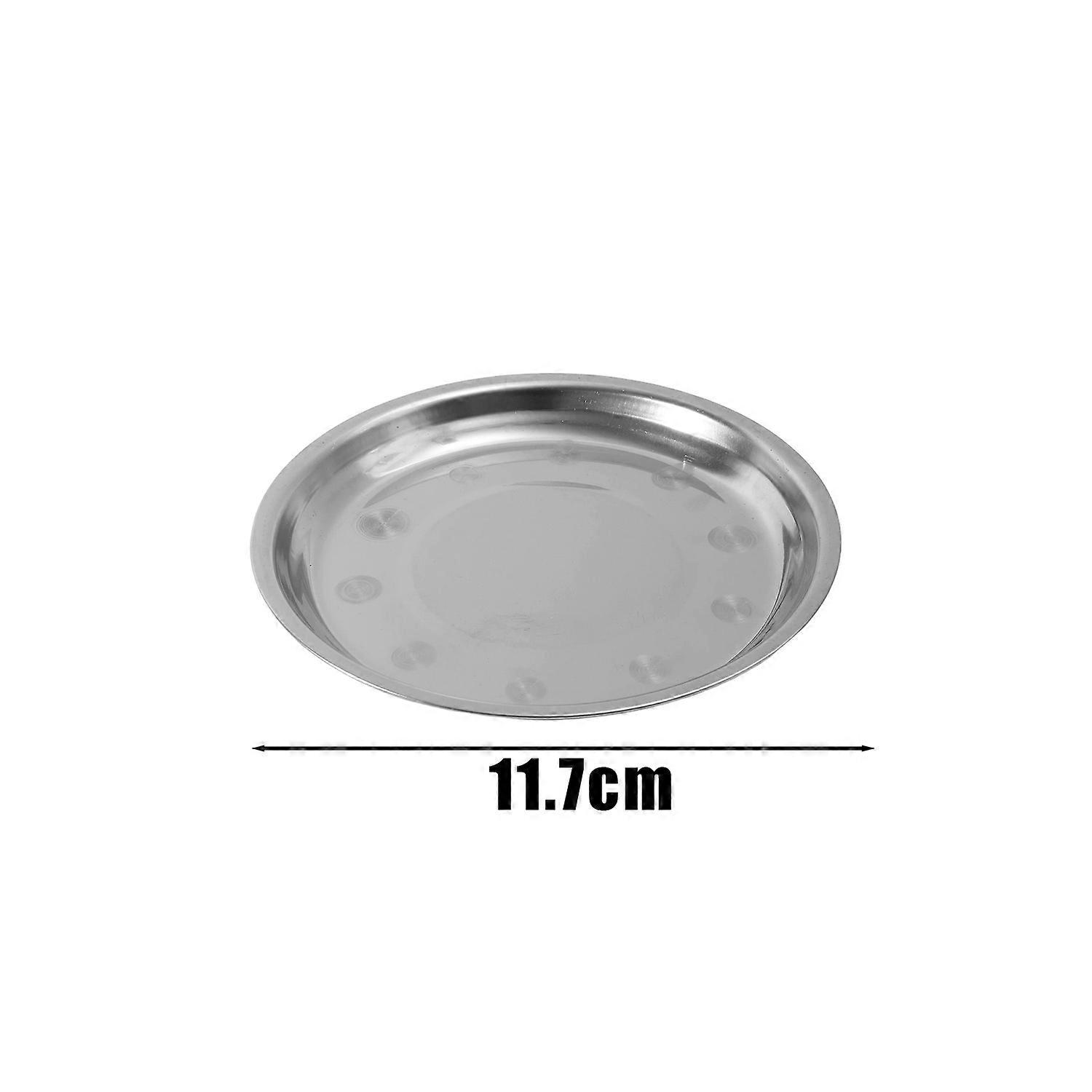 4 Sizes Stainless Steel Round Plate Thickened Silver Shallow Tray Rust-Proof Camping Plate BBQ Picnic Dishes Kitchen Tableware