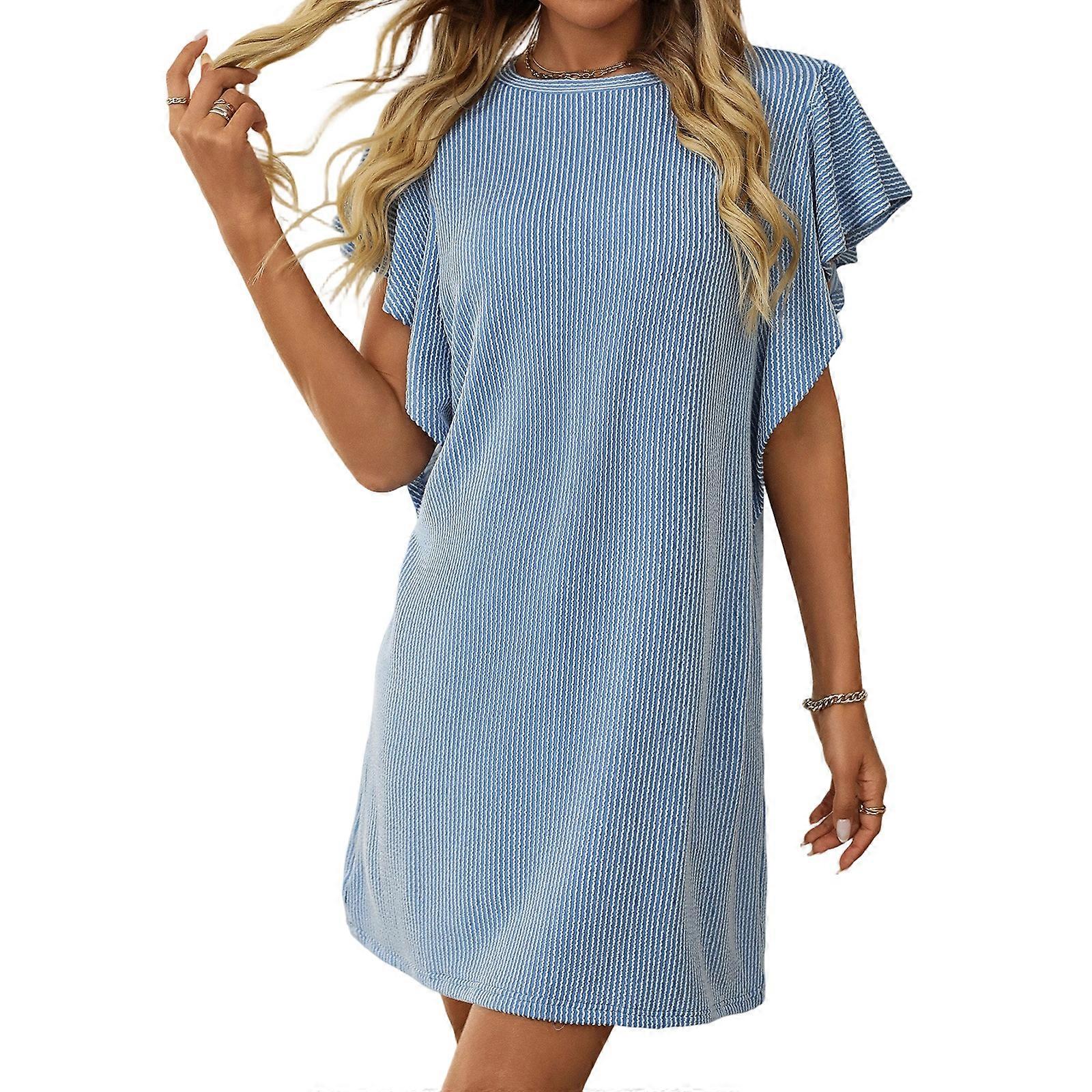 Women's twist striped ruffle sleeve midi dress Sky Blue XL