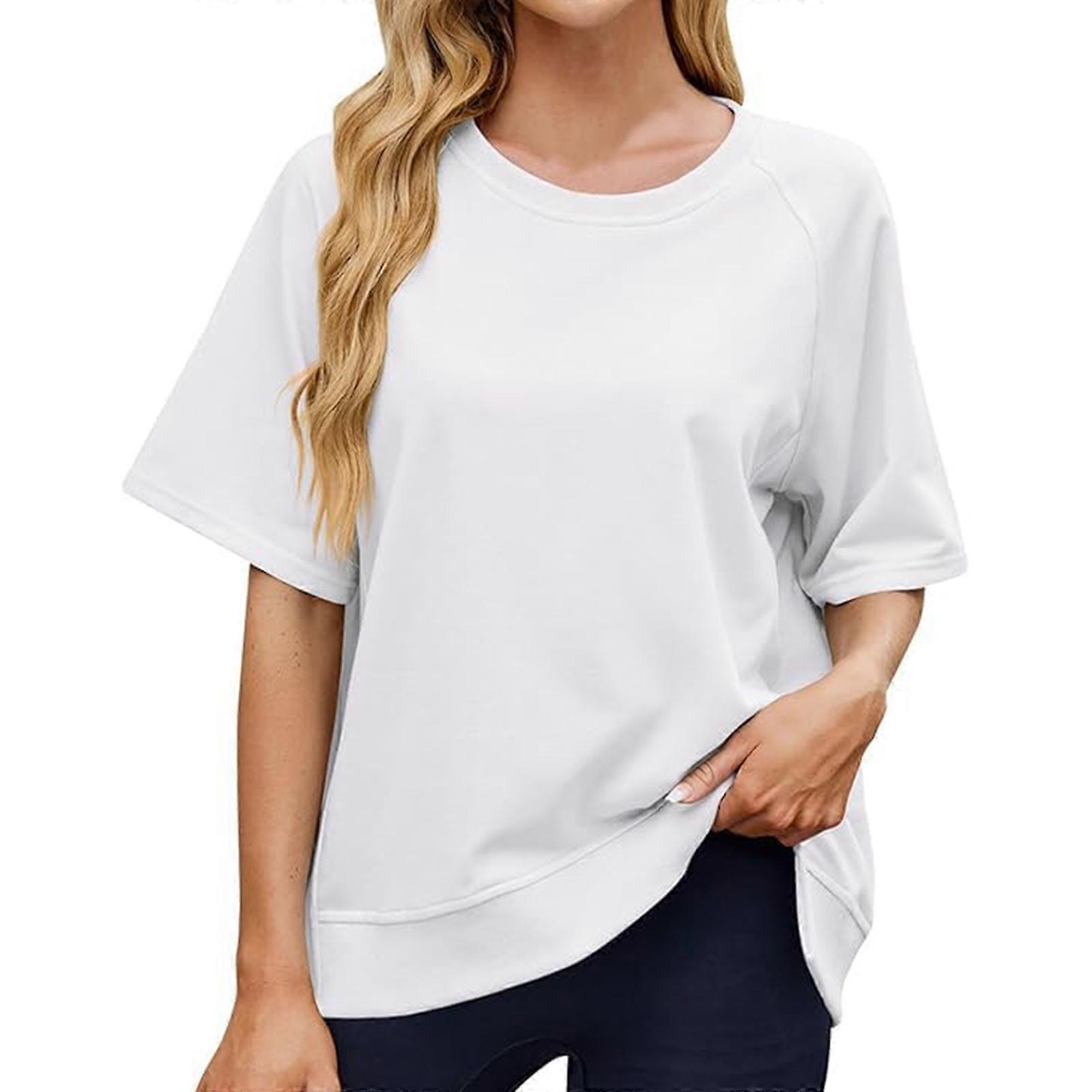 Women's Solid Color Crew Neck Raglan Short Sleeved Sweatshirt Oversize Casual Tunic Pullover Loose Basic T Shirts White XL