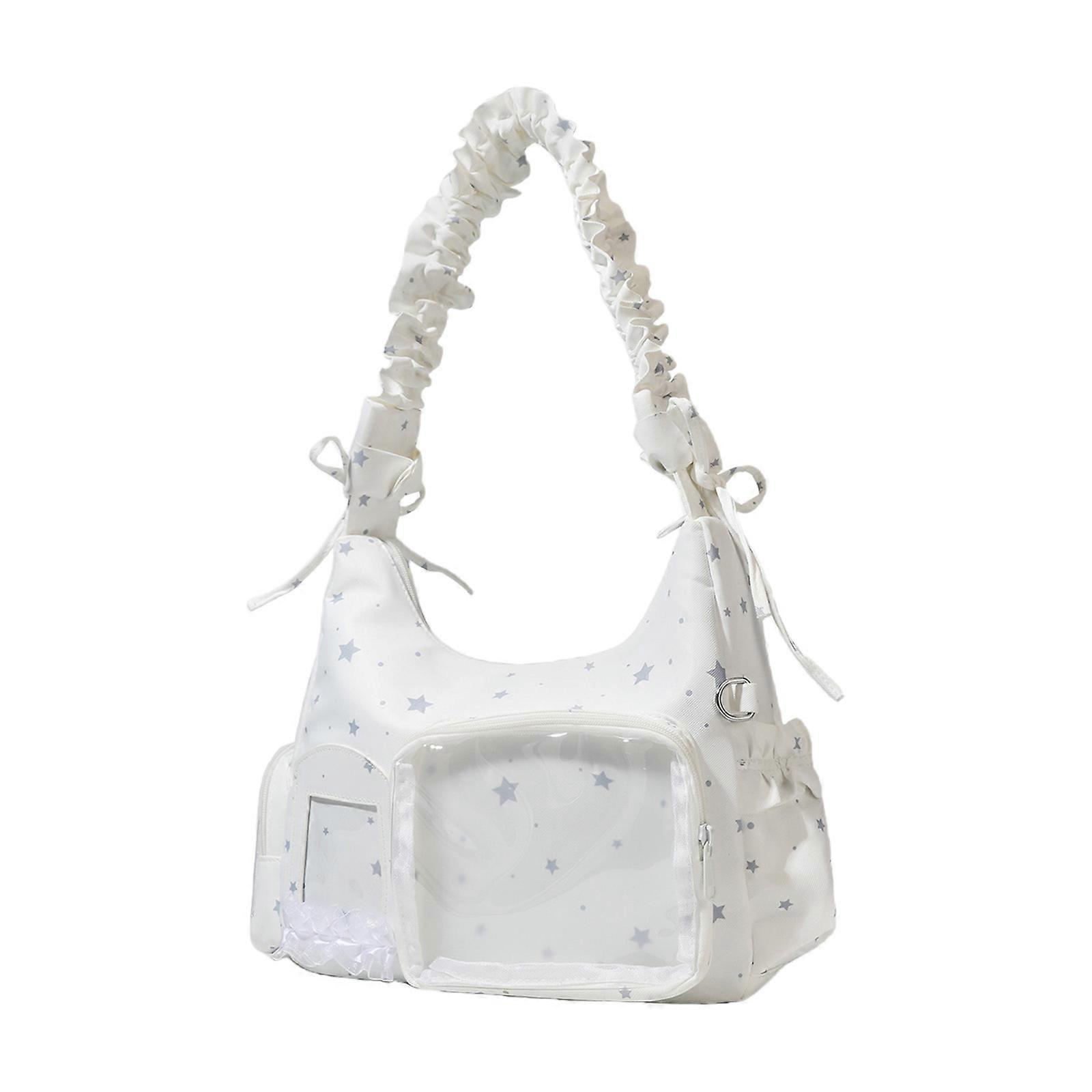 Contemporary Underarm Purse With Anime Detail And Star Print Lightweight Nylon Shoulder Bag For Various Occasion White