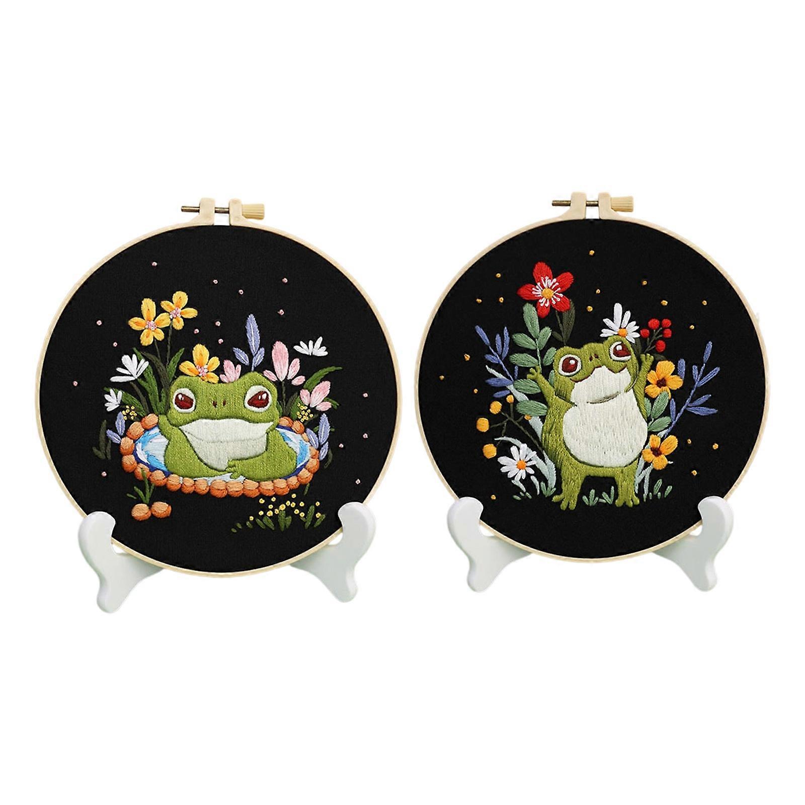 Creative Fun Embroidery Craft Set Frogs Theme Full Sewing Materials Cotton Fabric For All Ages Gift Multicolor