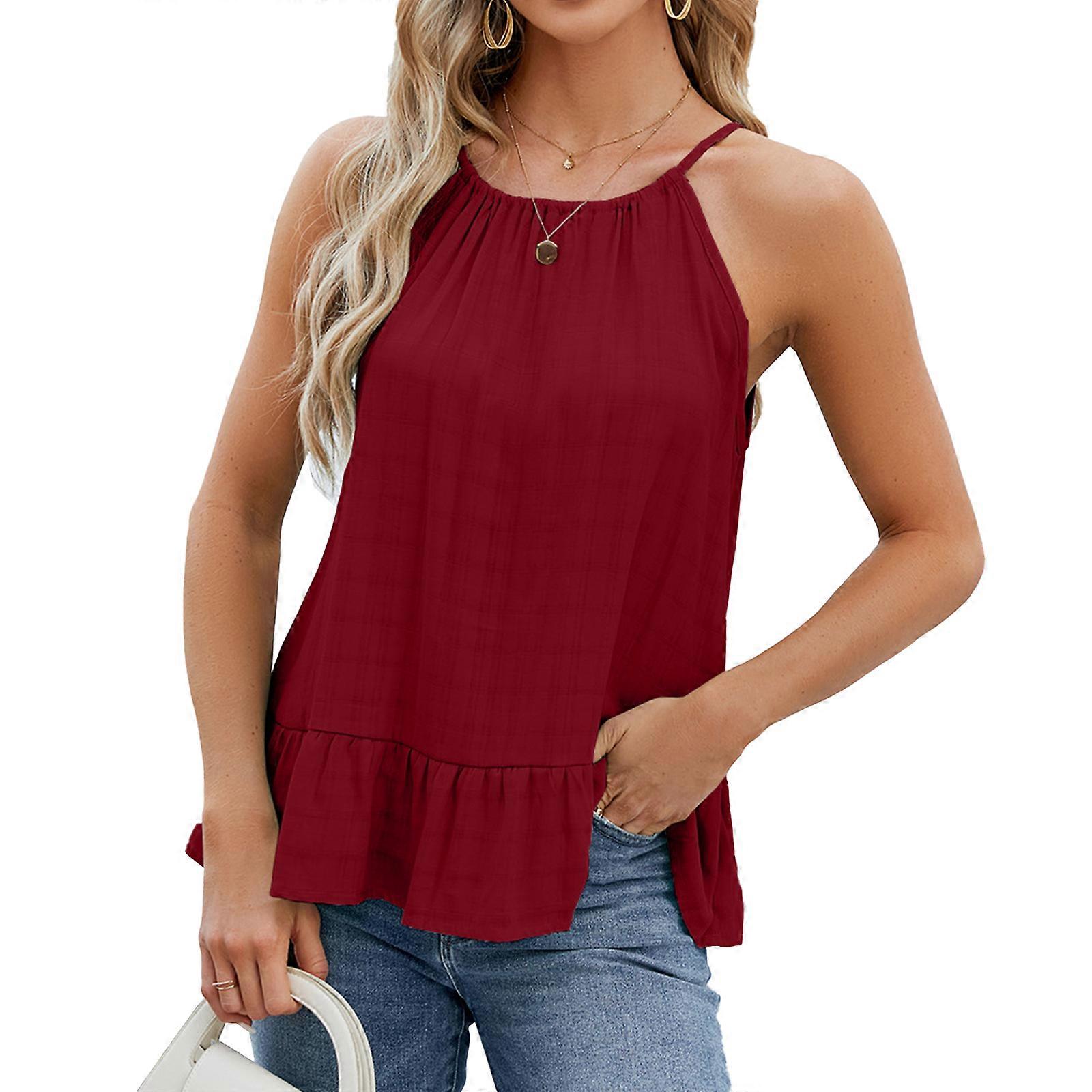 Womens Neck Strappy Tops Sleeveless Ruffle Tops Lightweight Loose Fit Shirts Casual Dressy Blouse Claret XL