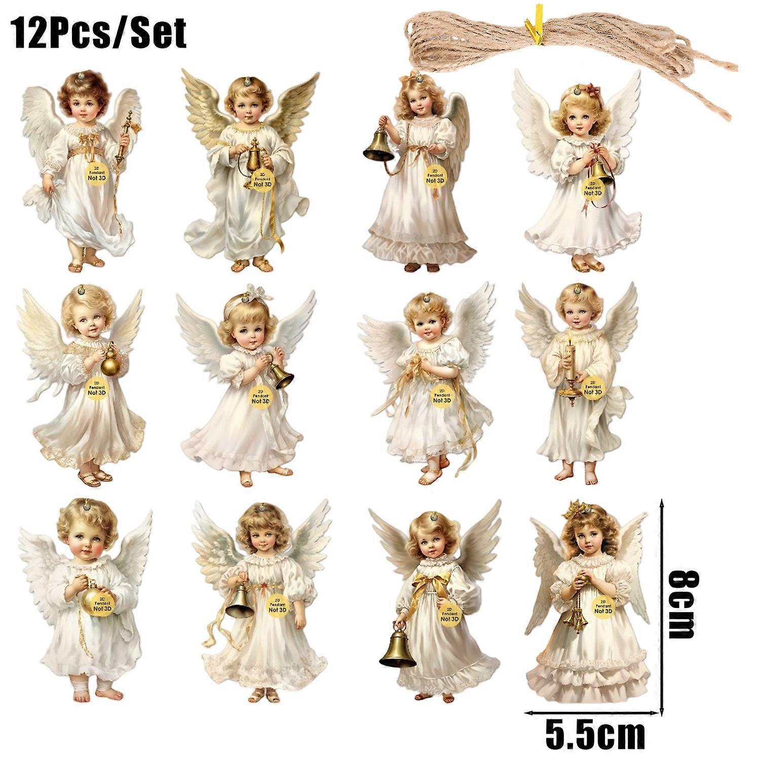 12PCS Vintage Angel Wooden Pendants Christmas Wood Hanging Ornaments DIY Home Xmas Tree Decor Christmas Holiday Party Supplies
