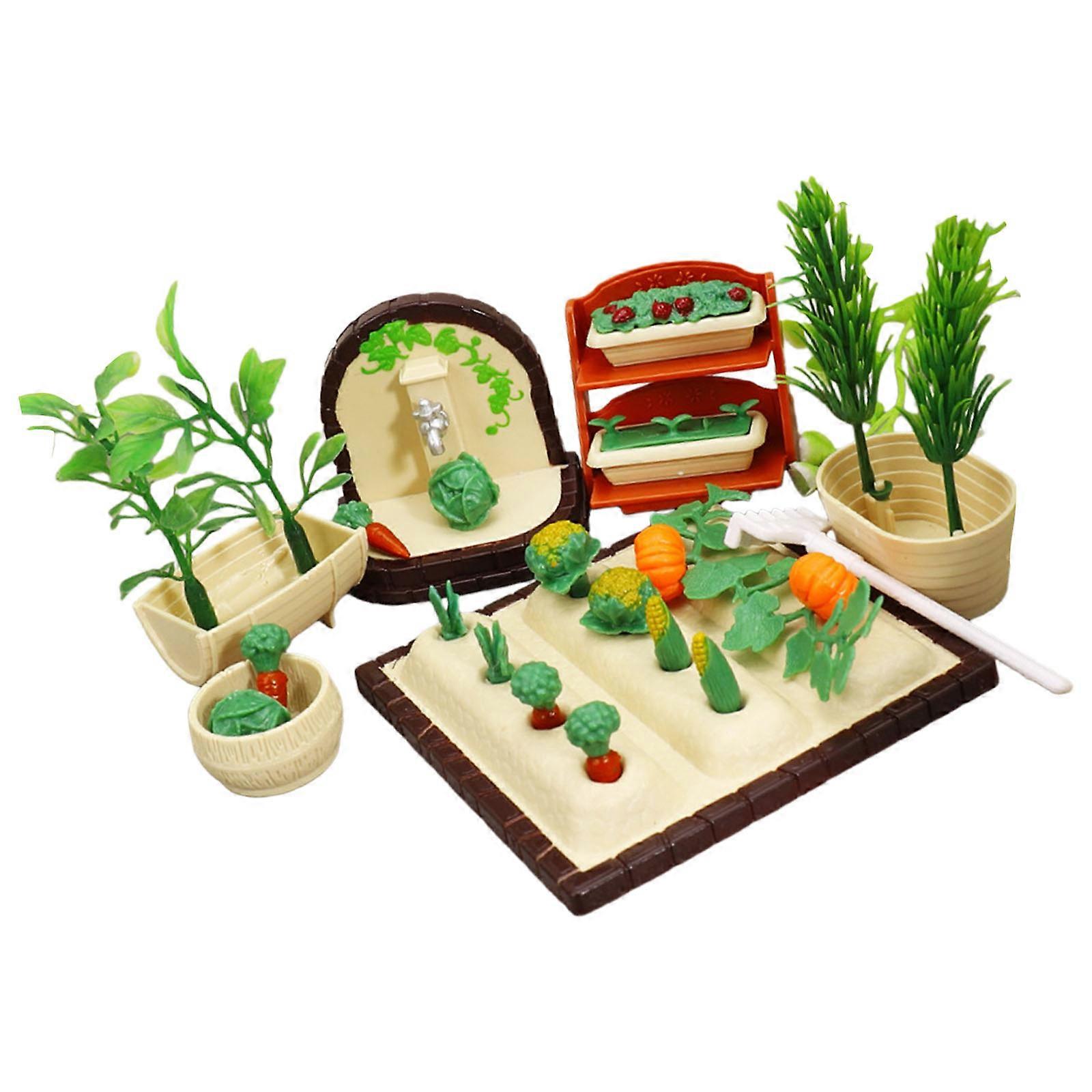 Miniature Landscape Garden Scene Set with Shovel and Rake Plant for Doll House Landscape Realistic Garden Display Props Multicolor