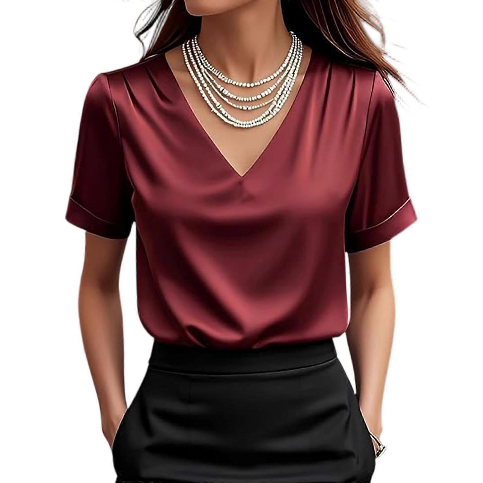 Women Fashion Clothes Dressy Casual Blouses Cap Sleeve Shirts Work Outfits Burgundy XL
