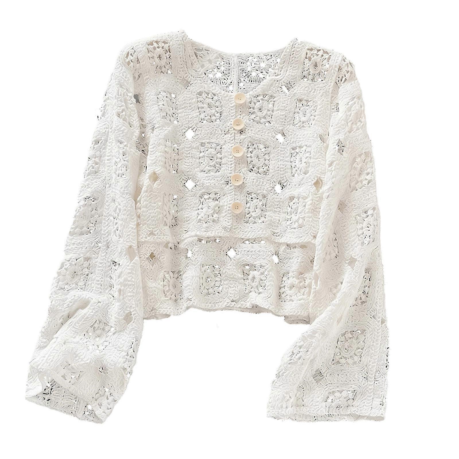 Womens Summer Crochet Tops Long Sleeve Pullover Sweater Hollow Out Knit Tops Shirt Beach Cover Ups White os