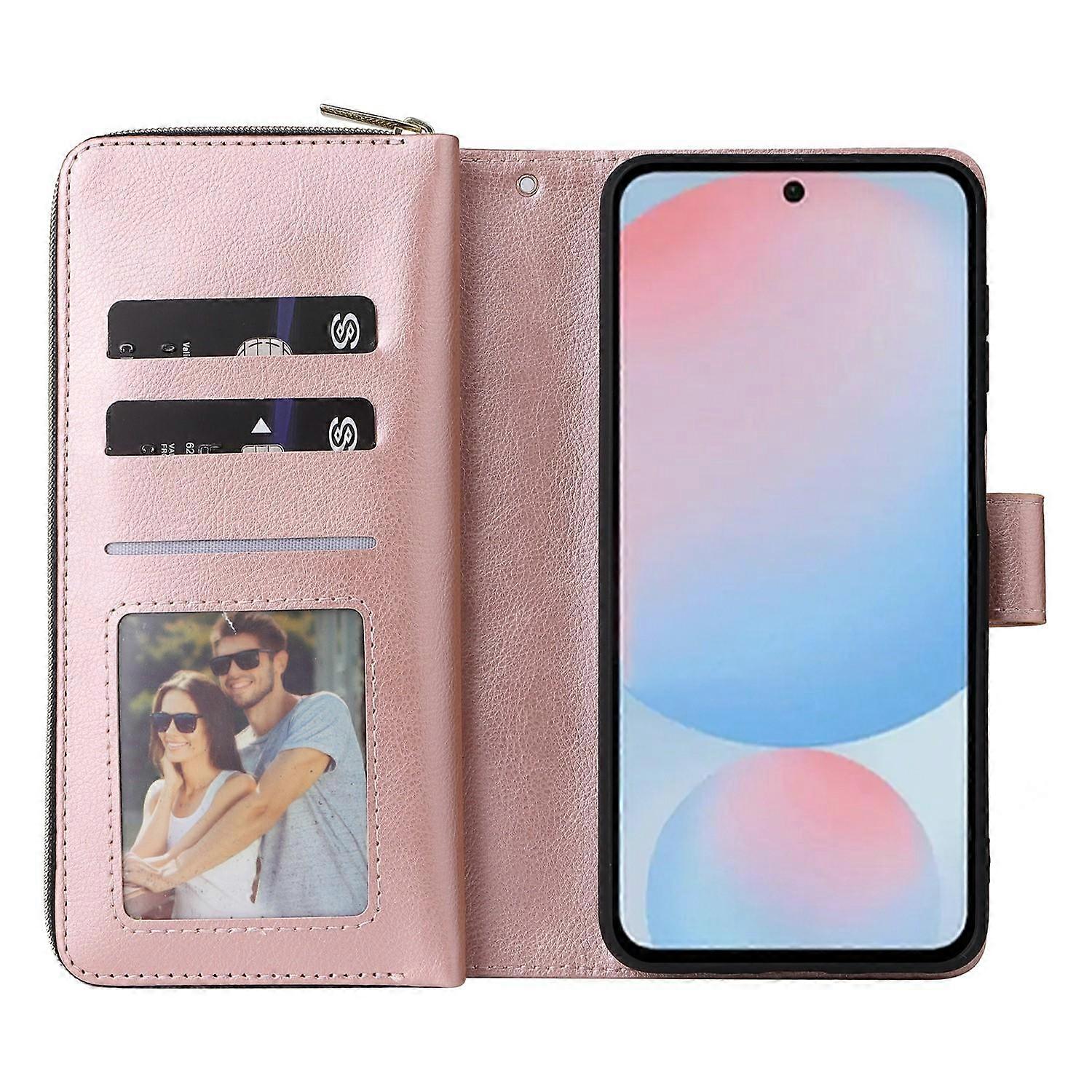 For Samsung Galaxy A37 5G Case Zipper Pocket 9 Card Slots PU Leather Phone Cover with Hand Strap