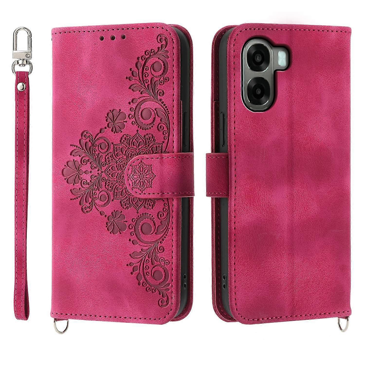 For Oppo A6x 5G A6x 4G Wallet Case Flower Pattern PU Leather Phone Cover with Strap